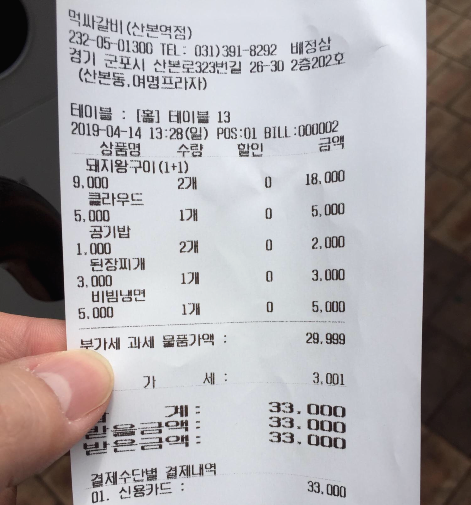 2인분이면 만원 차이가 나기때문에 저희는 그냥