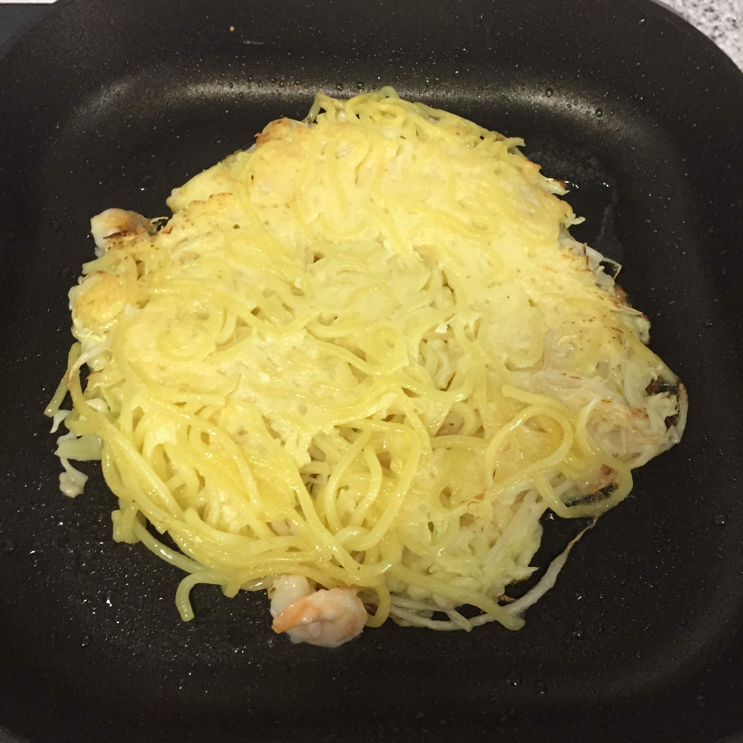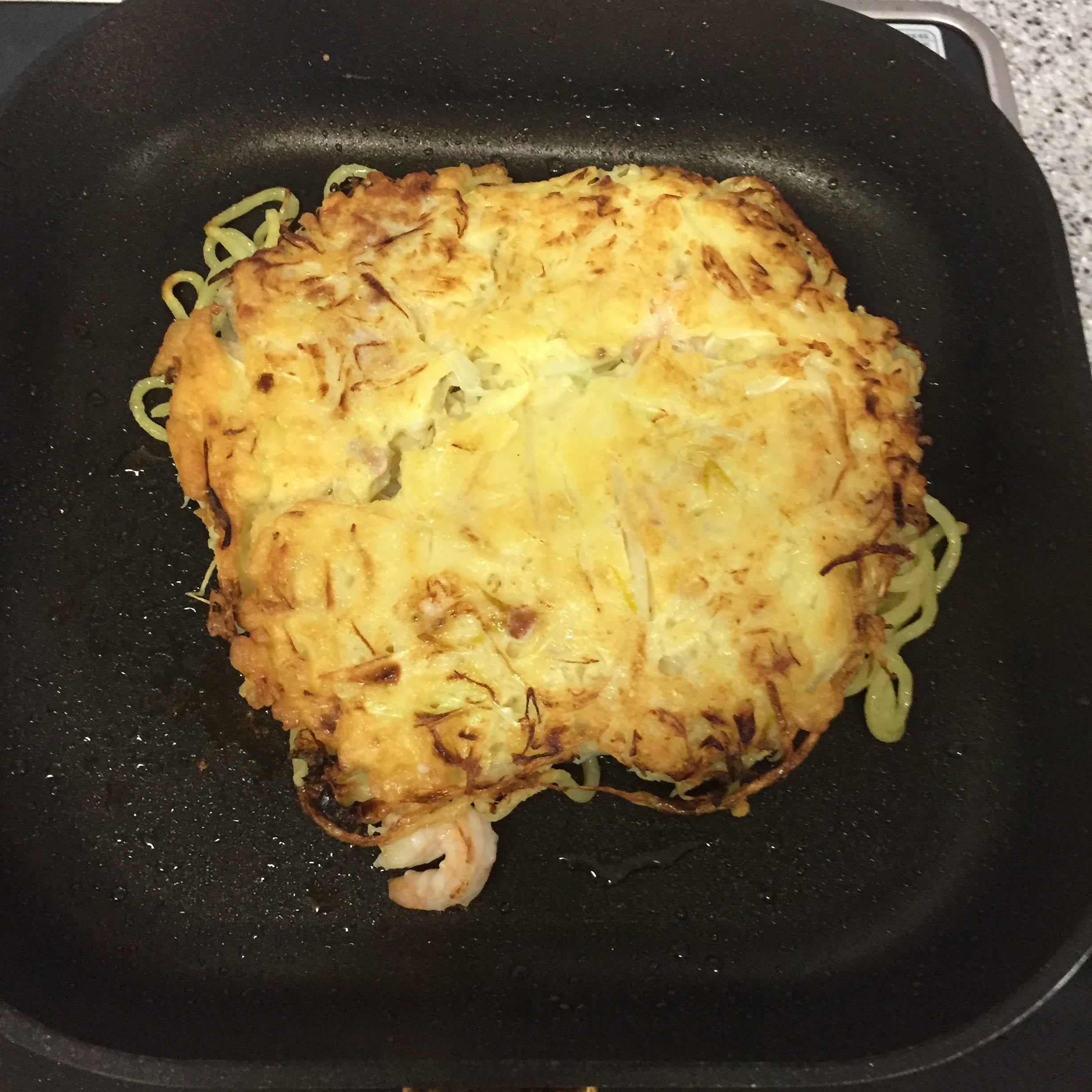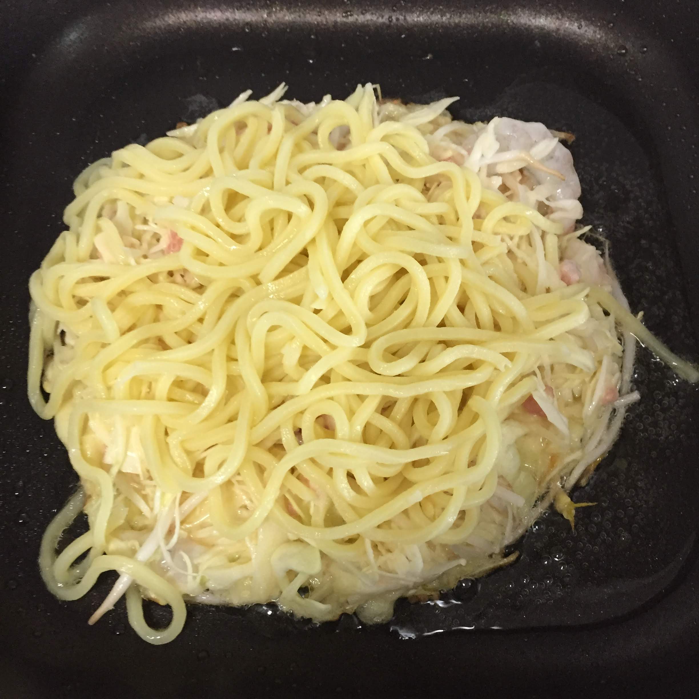 야키소바 면을 얹고 뒤집어줍니다.