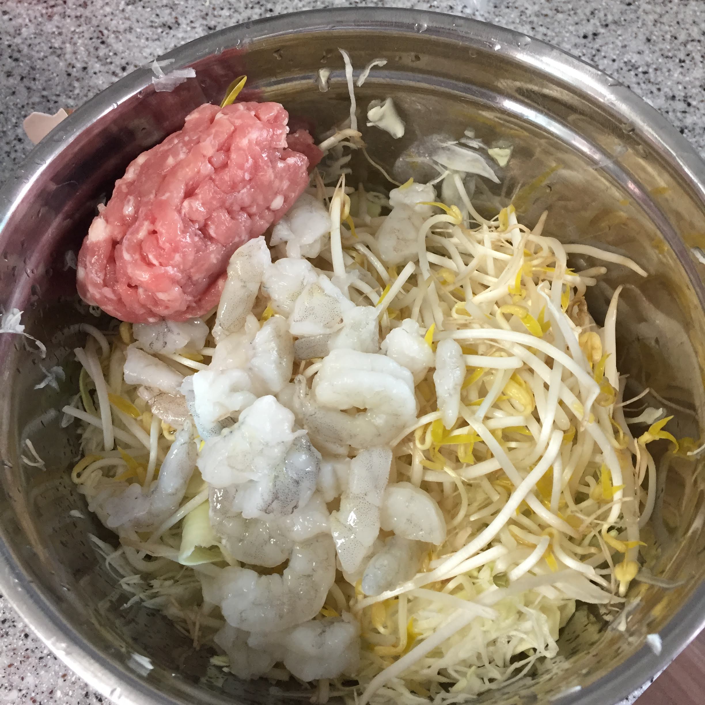 양배추, 숙주, 민치, 새우를 넣구요, 옥수수도 넣습니다.