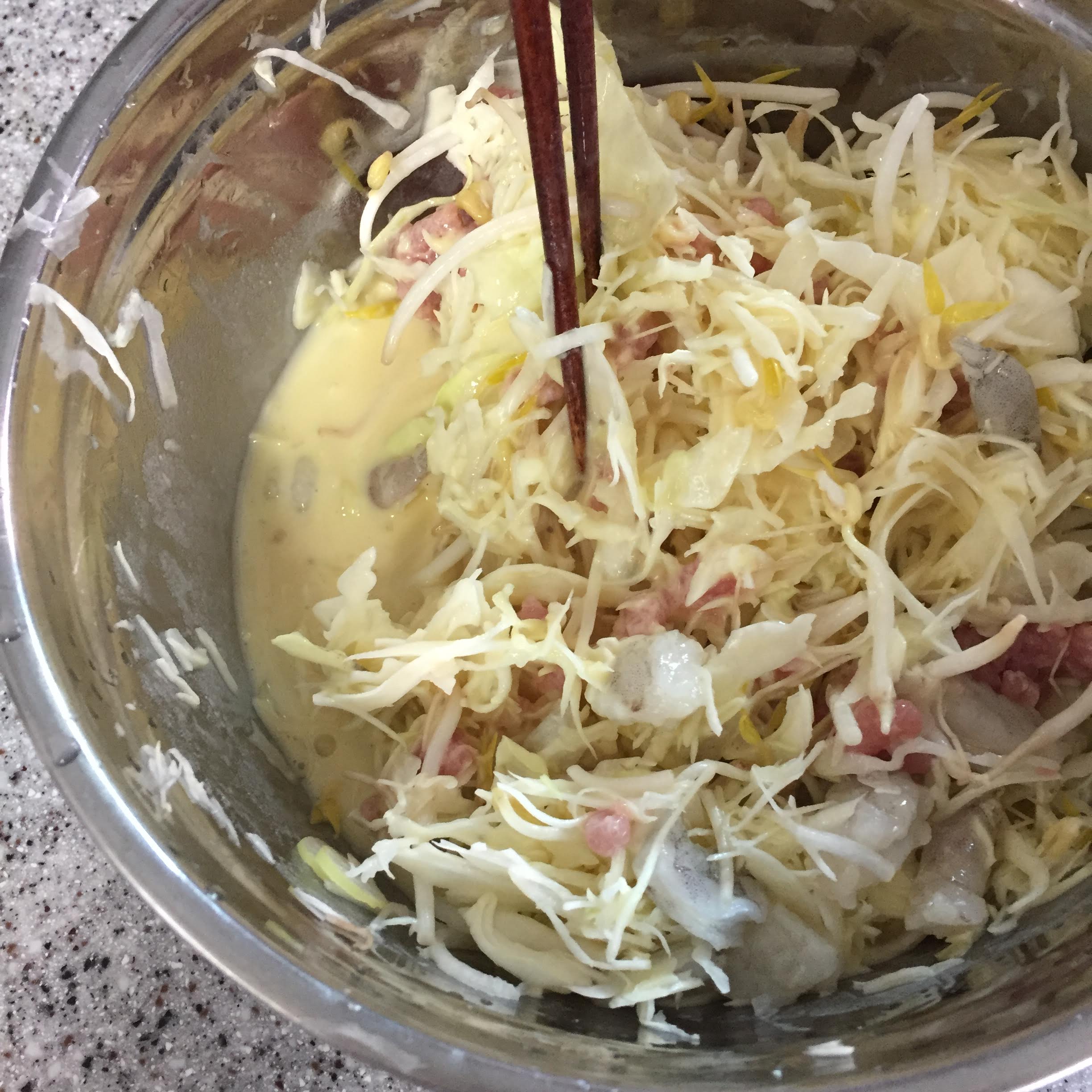 채썰린 재료들 사이사이에 잘 반죽이 스며들게만 하면