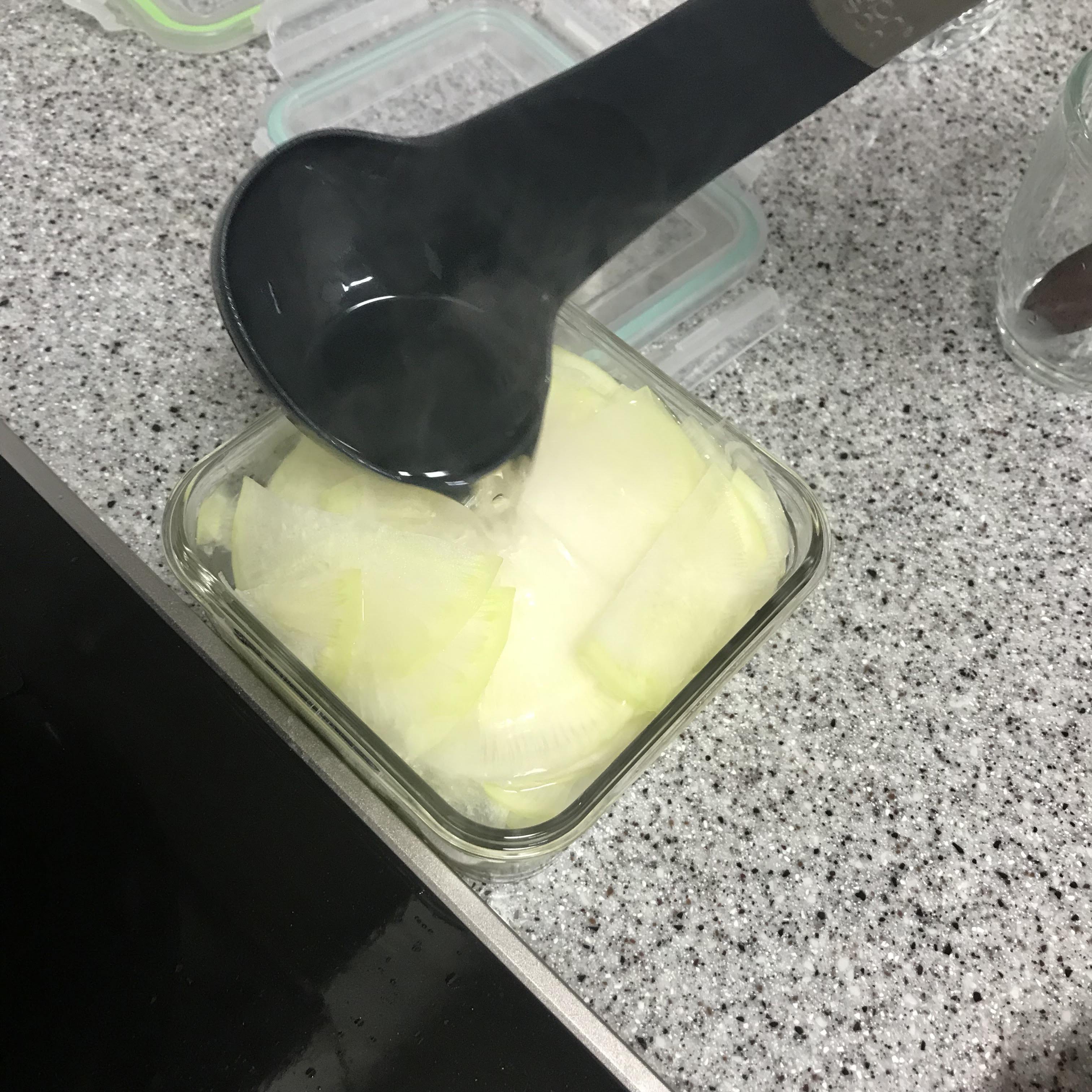 뜨거울때 부어줘야 무가 더 아삭해진댑니다.