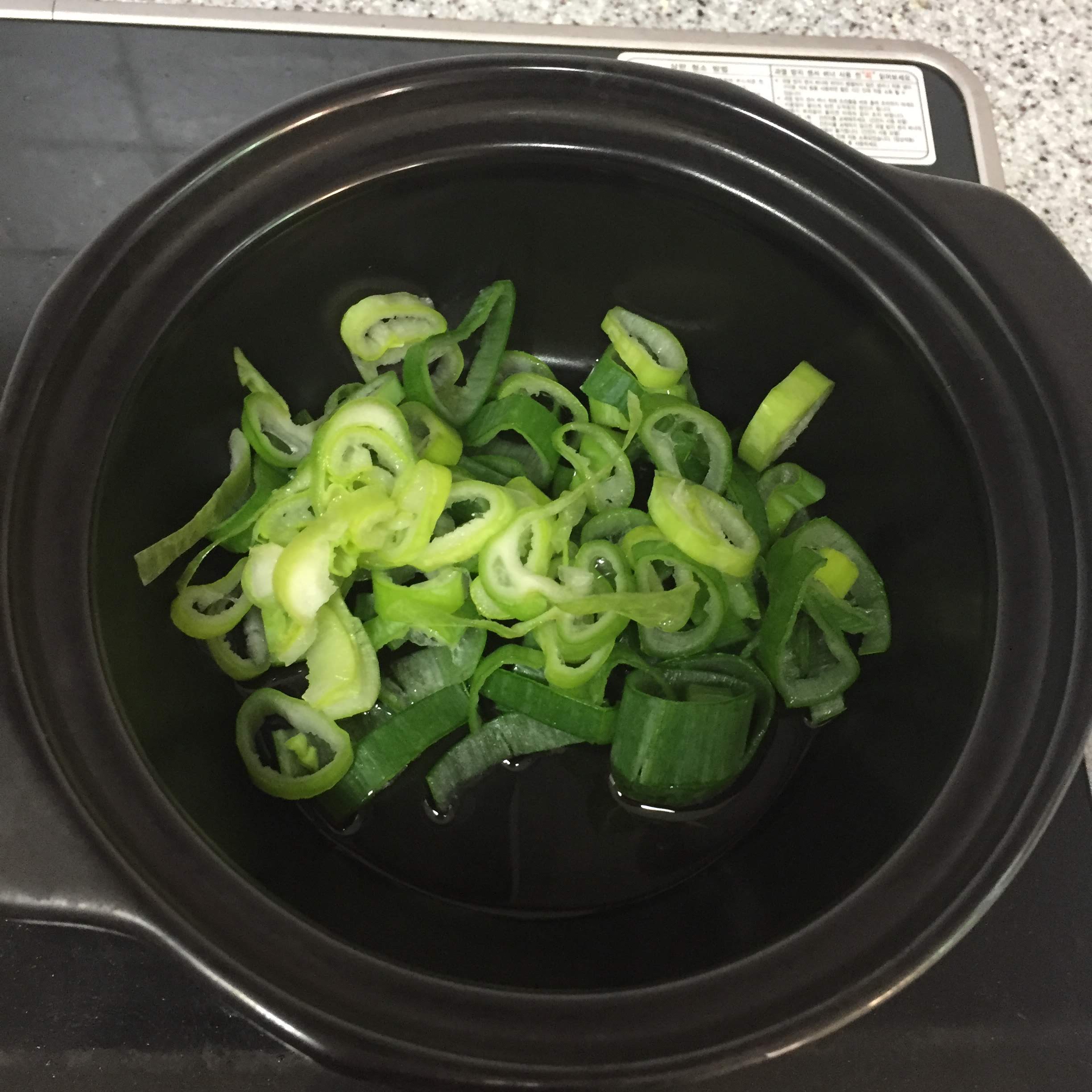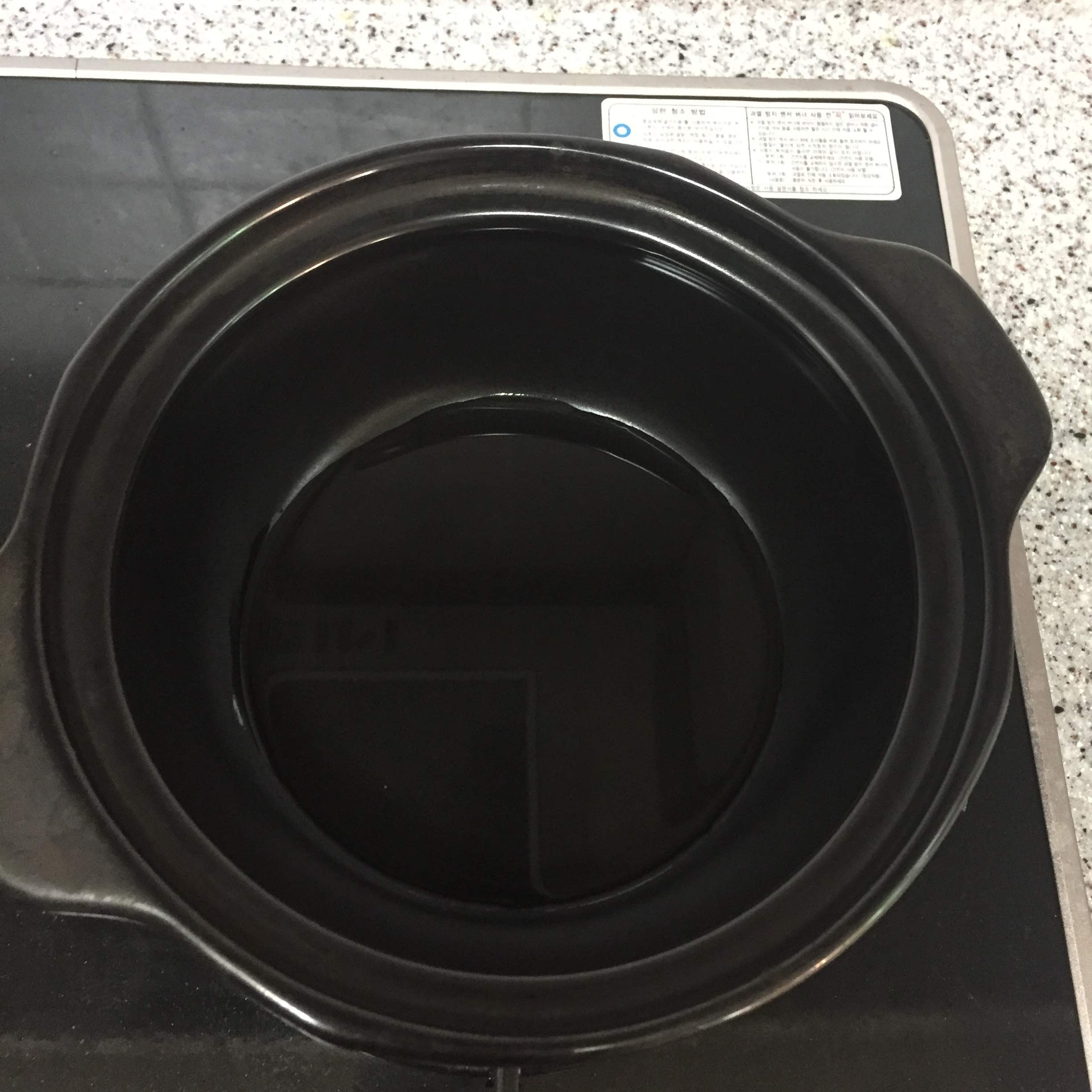 뚝배기에 기름을 두스푼 정도 두르고 불을 올립니다.