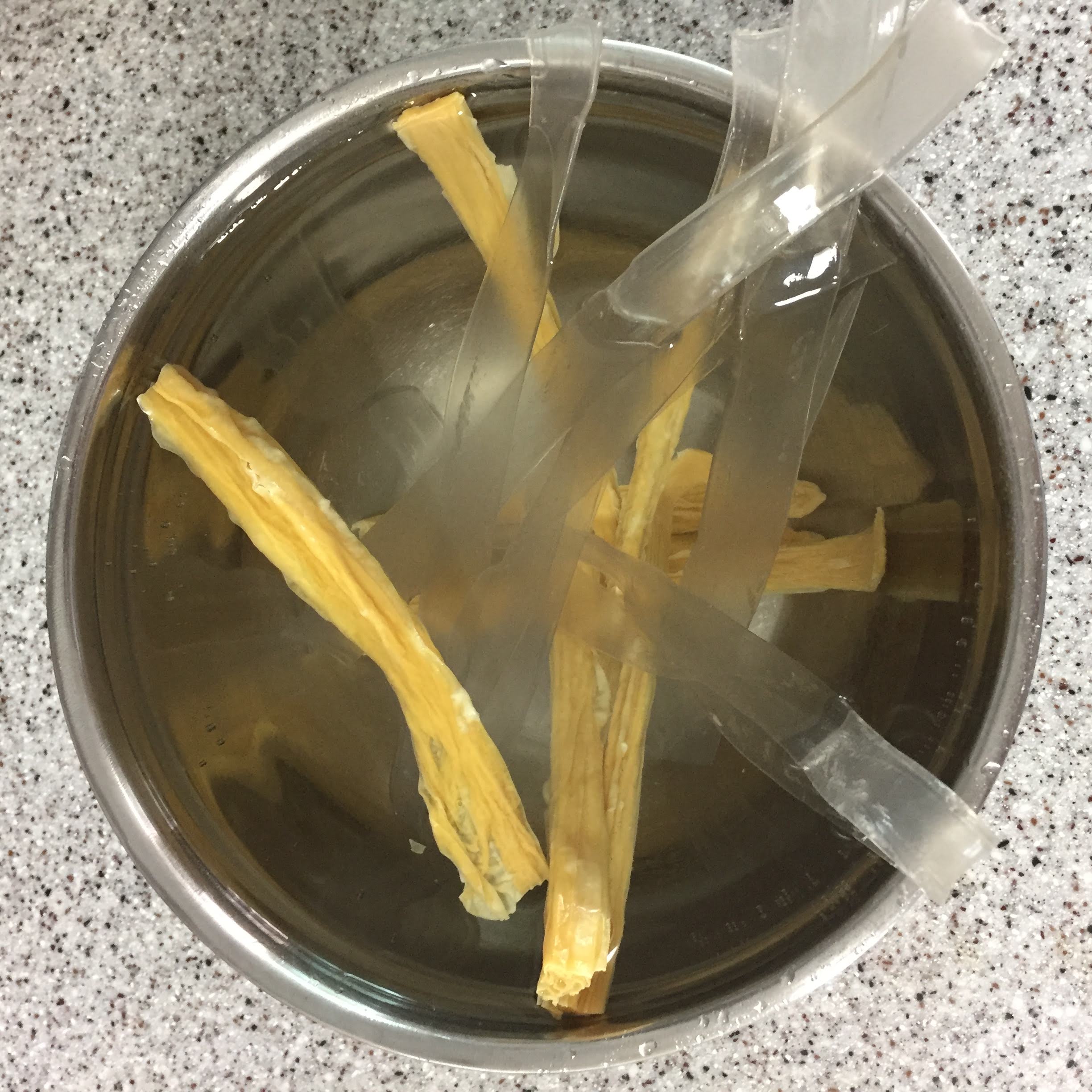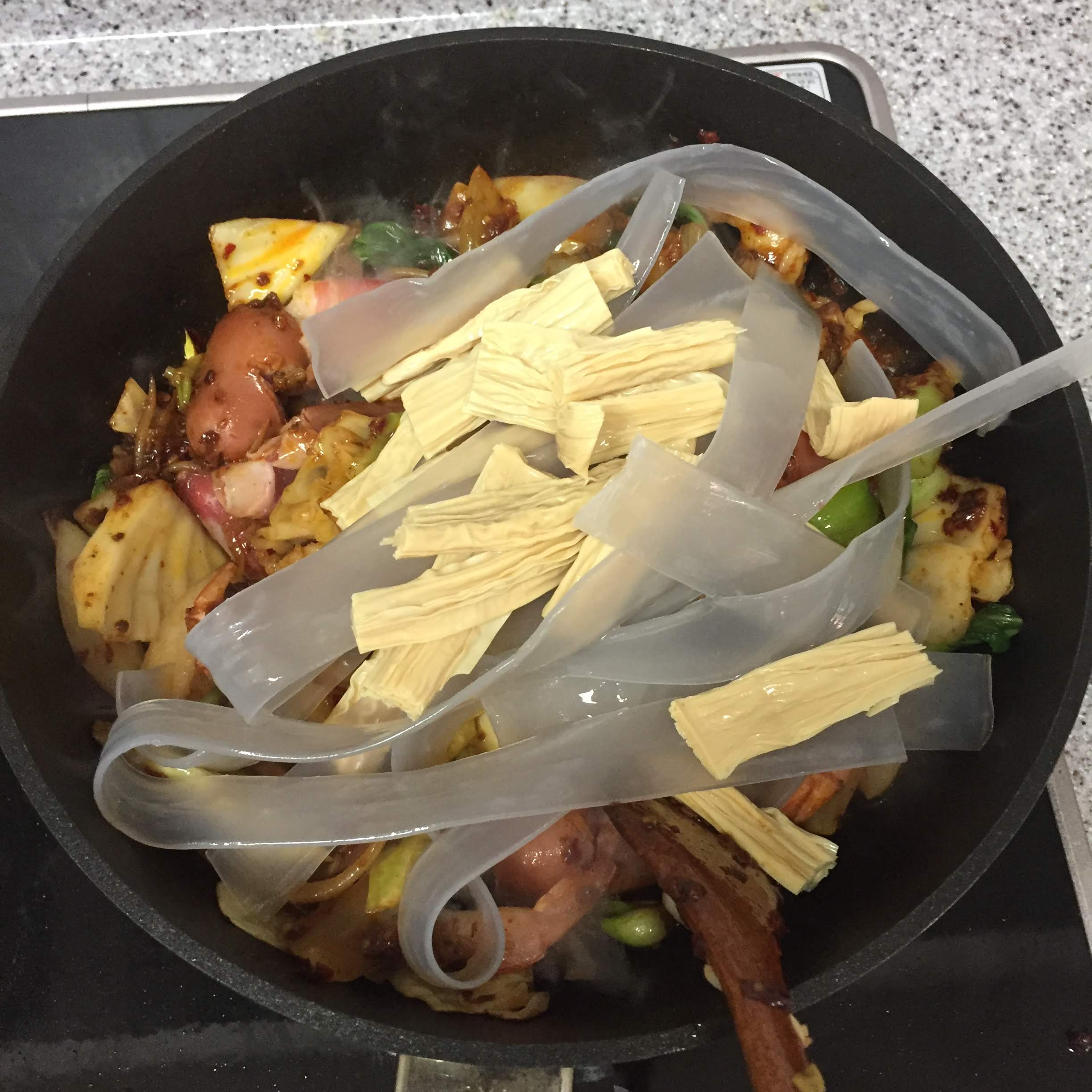 고기가 익고나면 불려둔 푸주와 당면을 넣고 볶습니다.