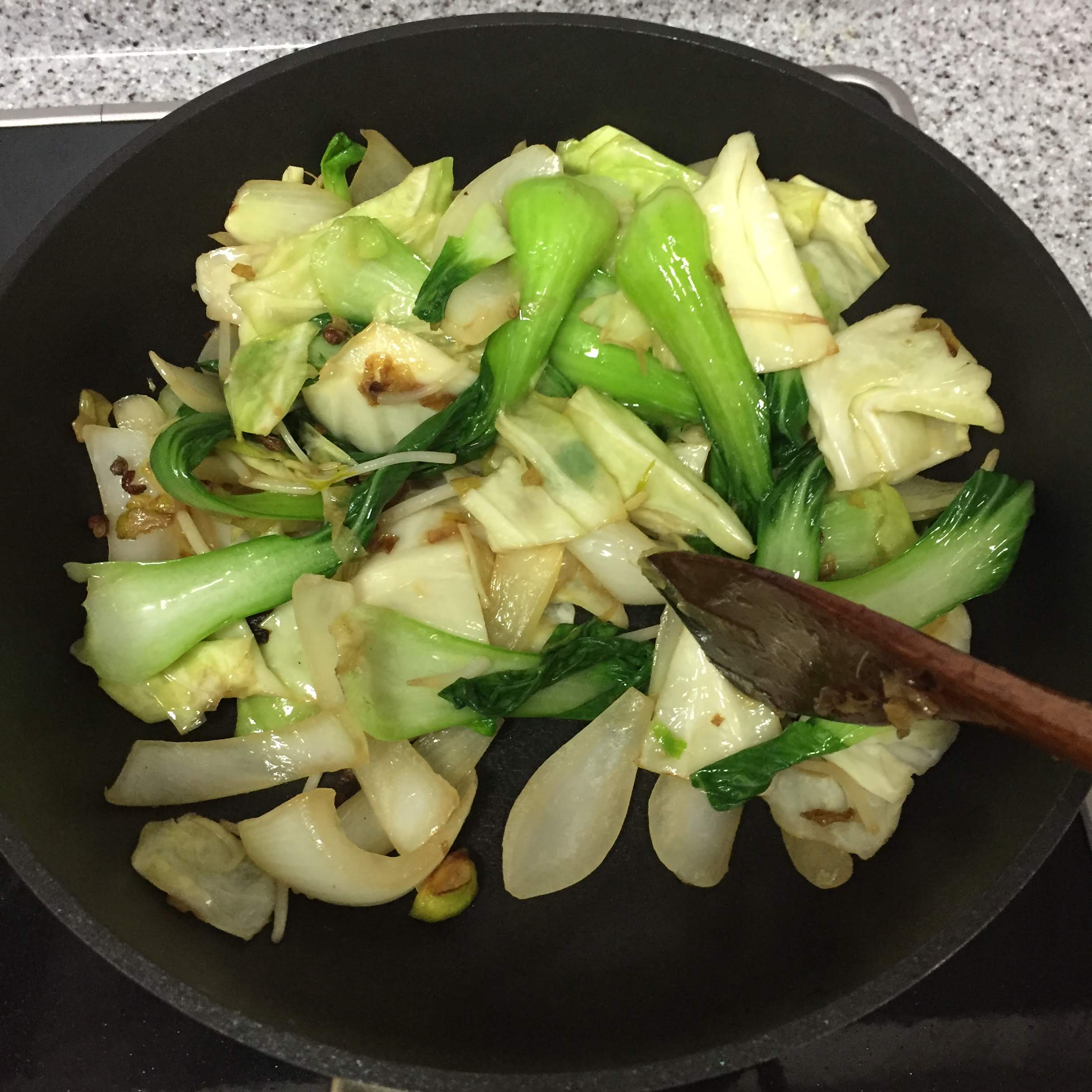 채소들이 숨이 어느정도 죽을때까지 볶다가