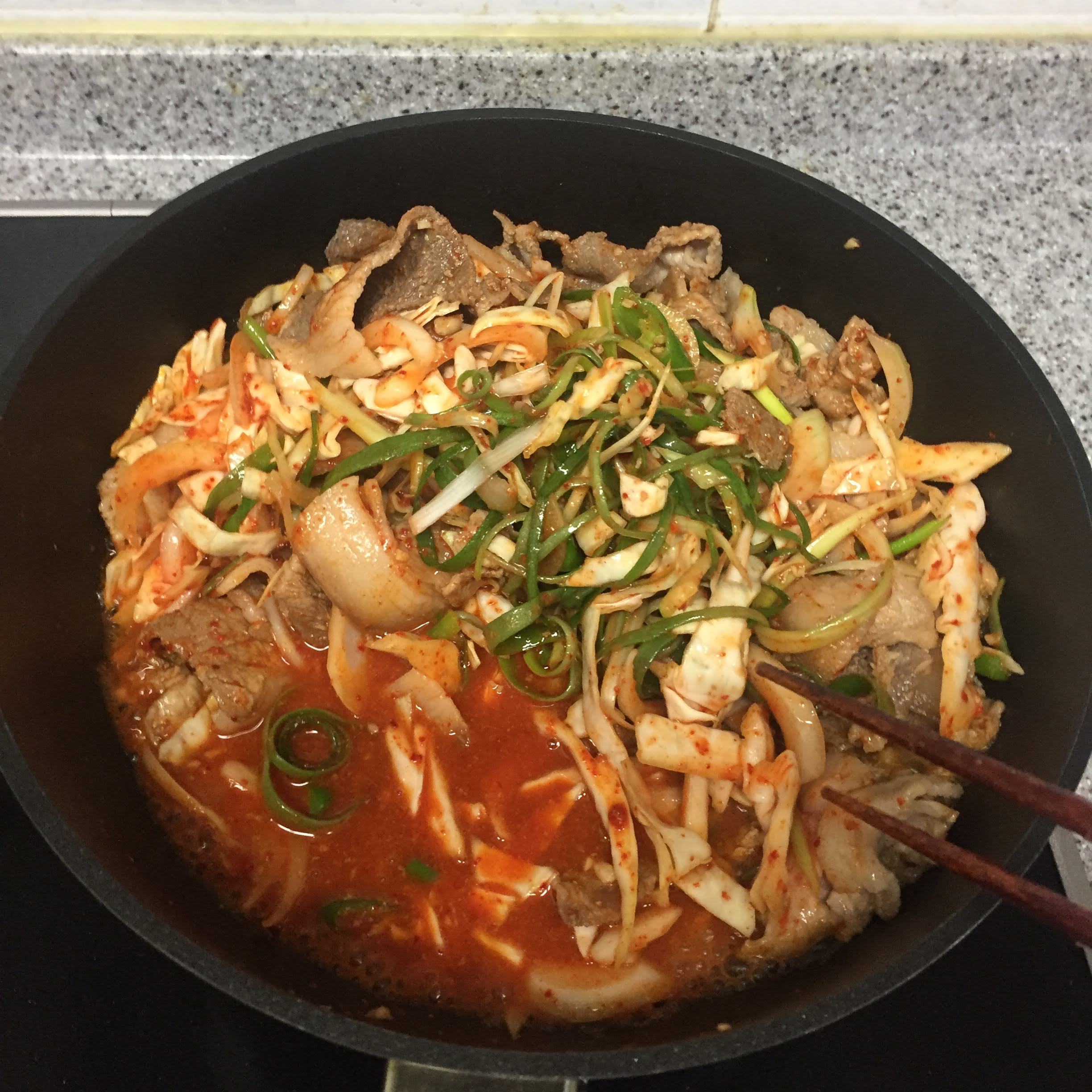 근데 삼겹살로 볶고나면 기름이 둥둥 뜬다는거.