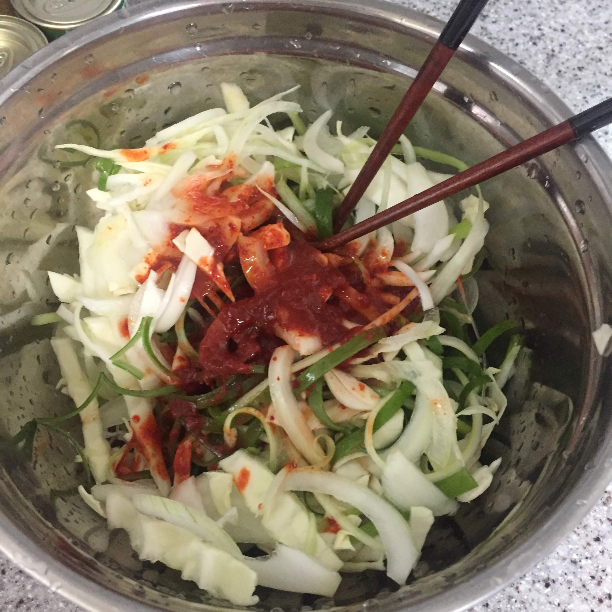 파채 무침용 고추장소스도 뚝딱 섞어만듭니다.