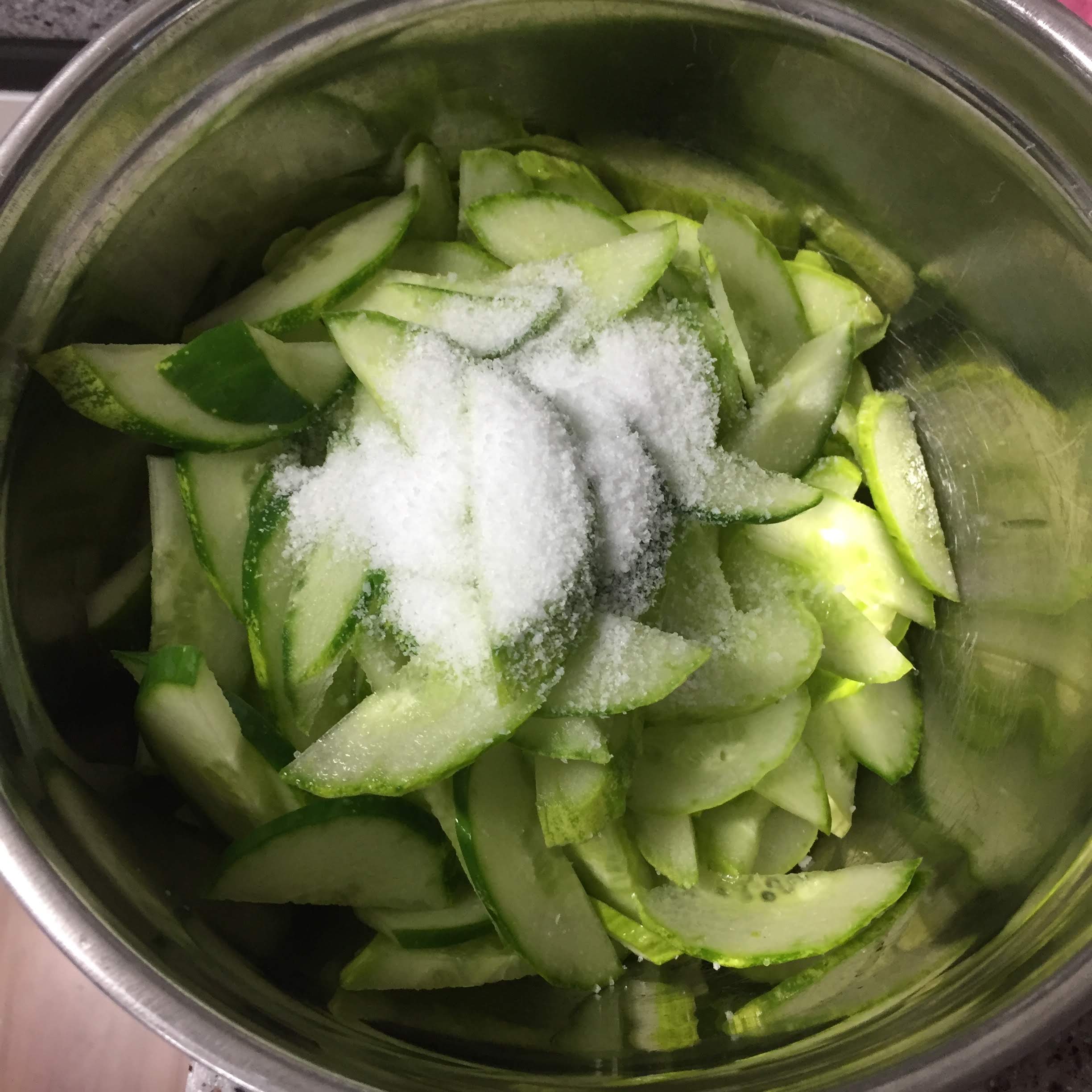썰은 오이를 소금에 살짝 절일겁니다.