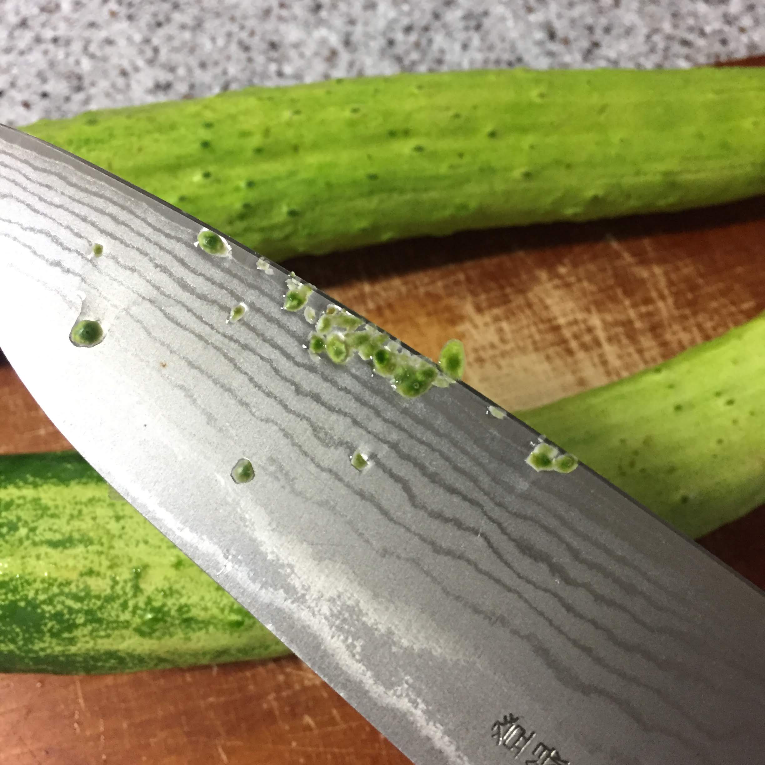 오이는 식칼로 가볍게 슥슥 긁어주면서