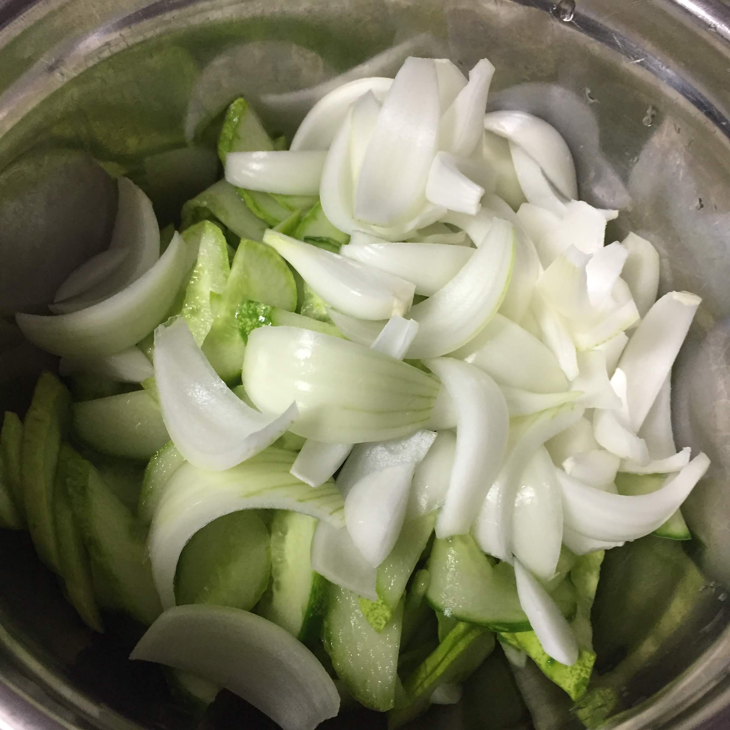 양파의 크기도 역시 오이와 비슷하게 썰어줍니다.