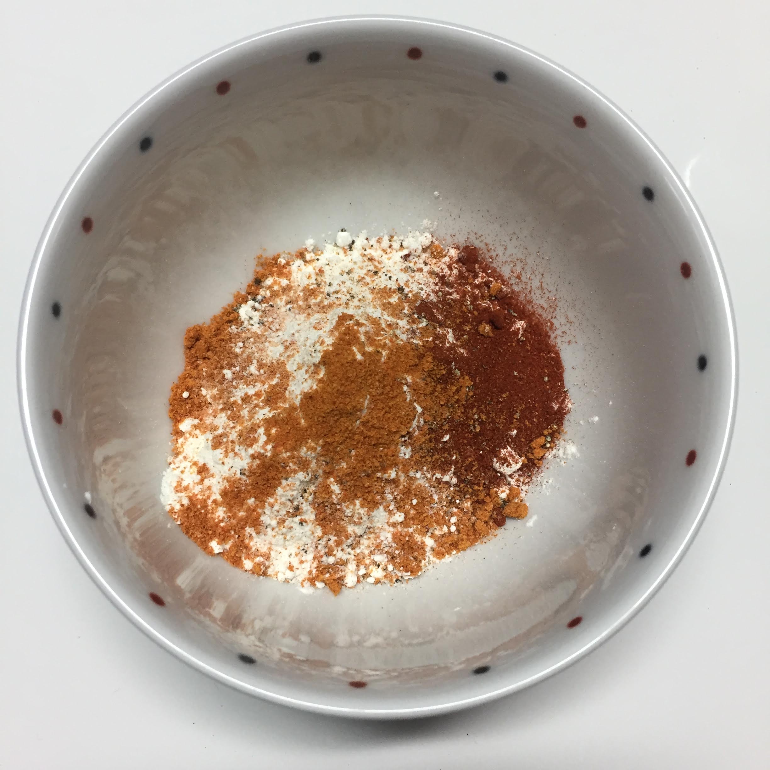 칠리파우더, 후추, 카레를 섞어줍니다.