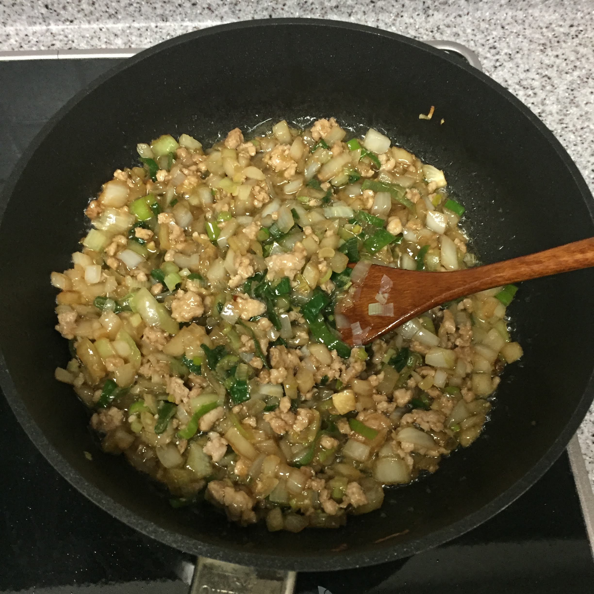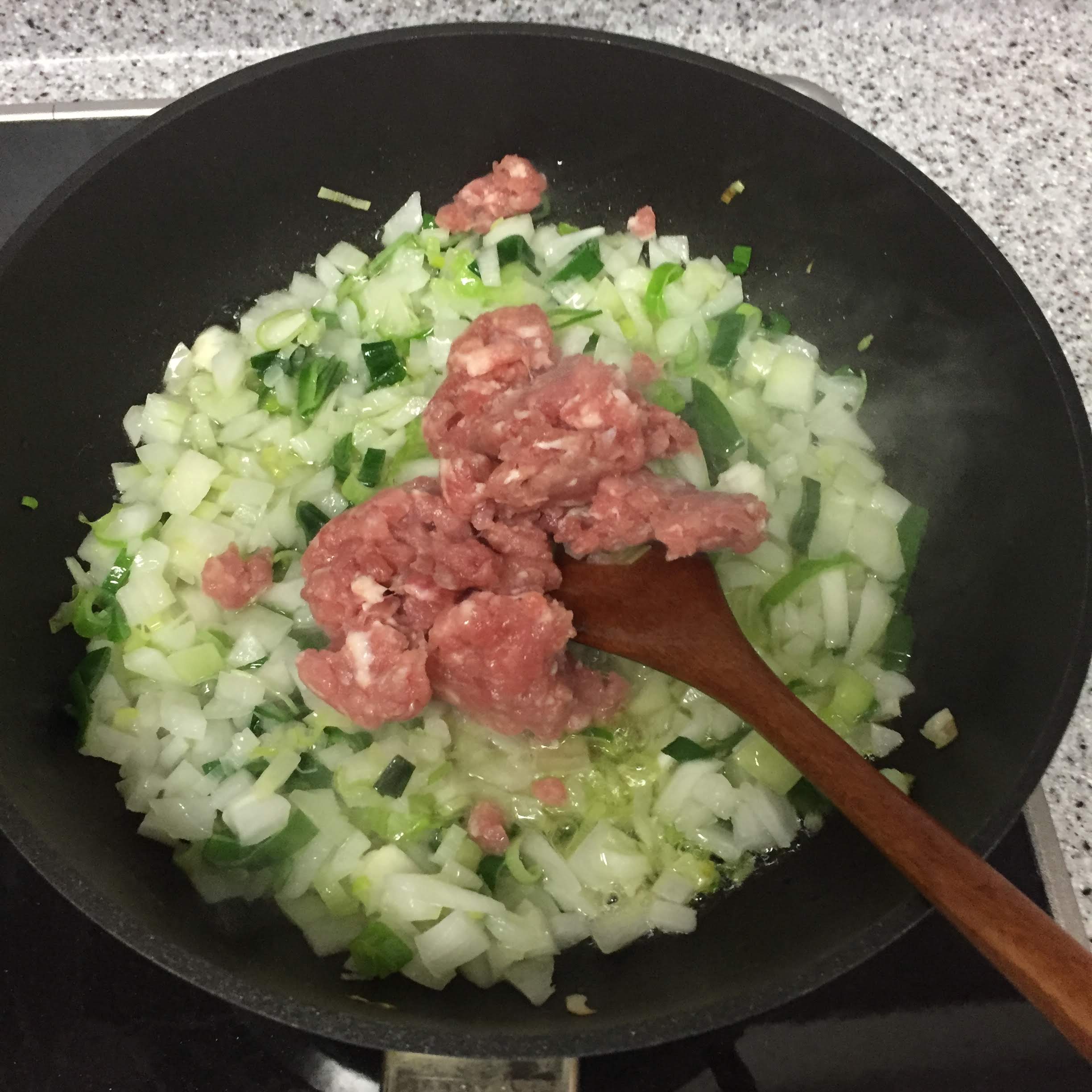 다진 돼지고기를 녹여서 넣어줍니다.