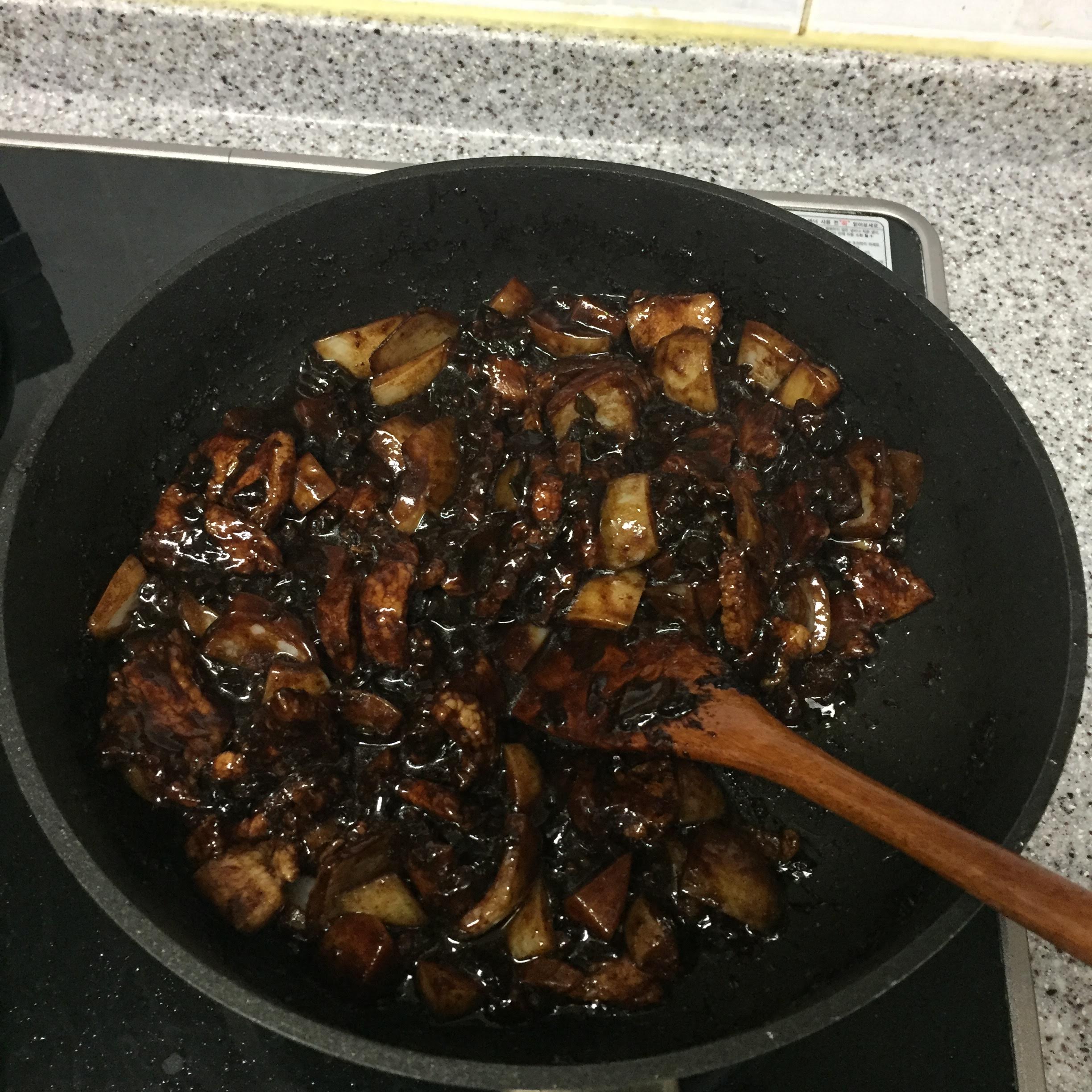 약간 적다 싶을정도로 춘장을 넣으신 후에