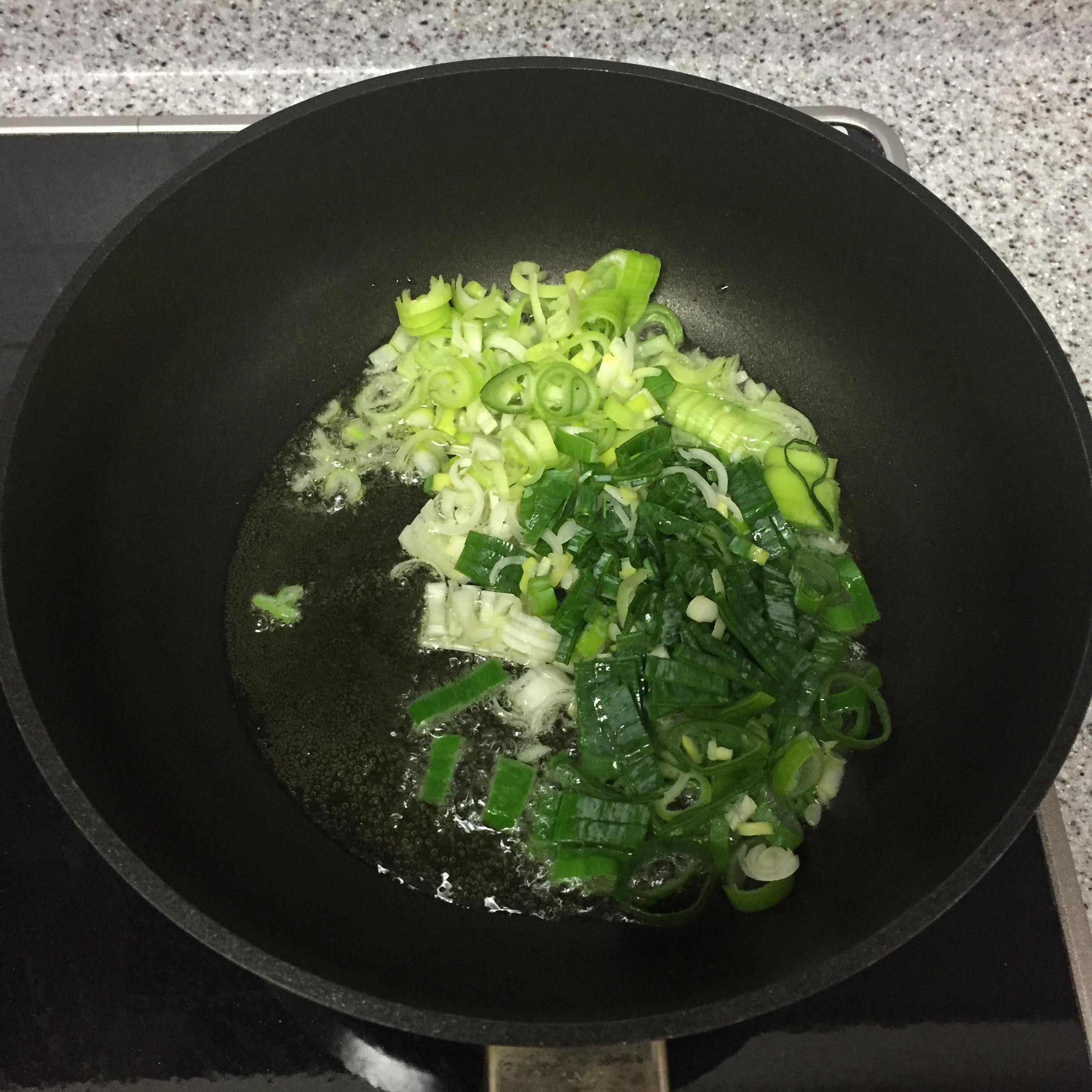 웍에 기름을 달궈서