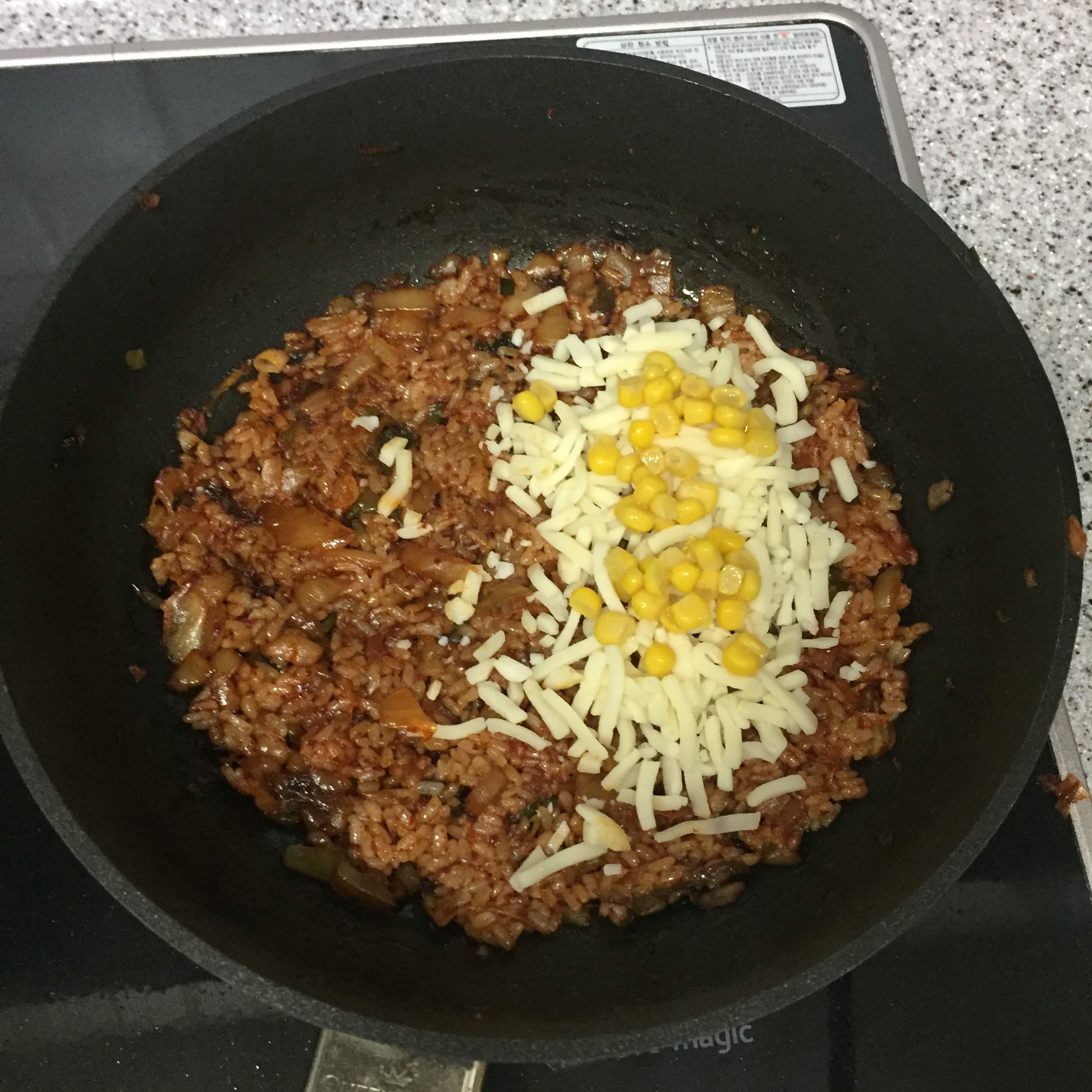 한쪽에 치즈와 옥수수를 올려줍니다.