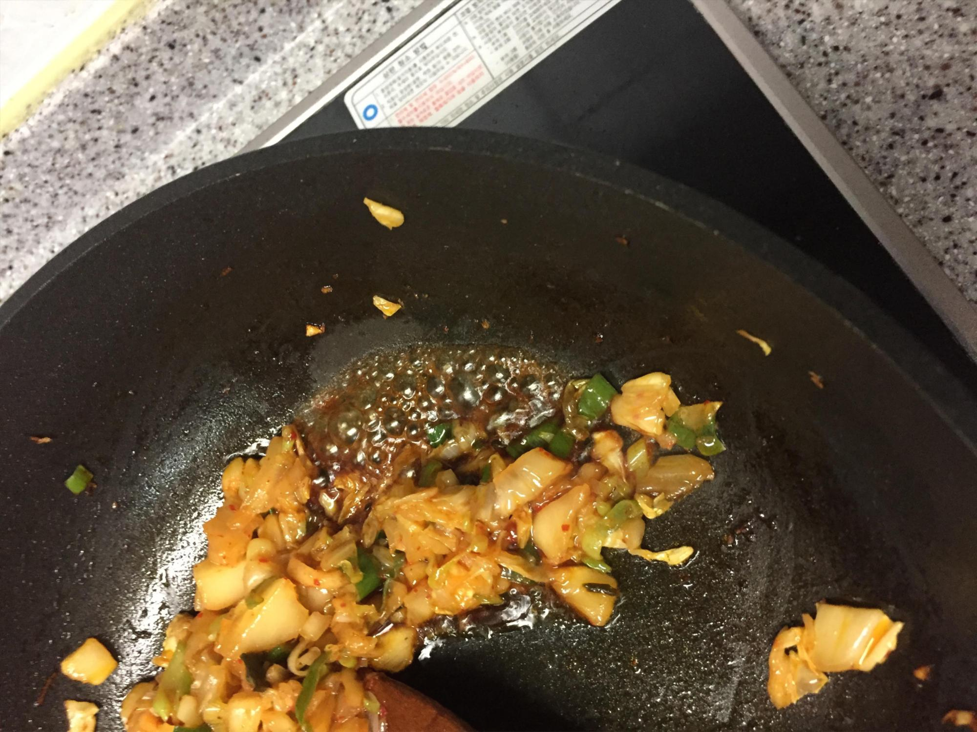 김치를 넣고 볶습니다.