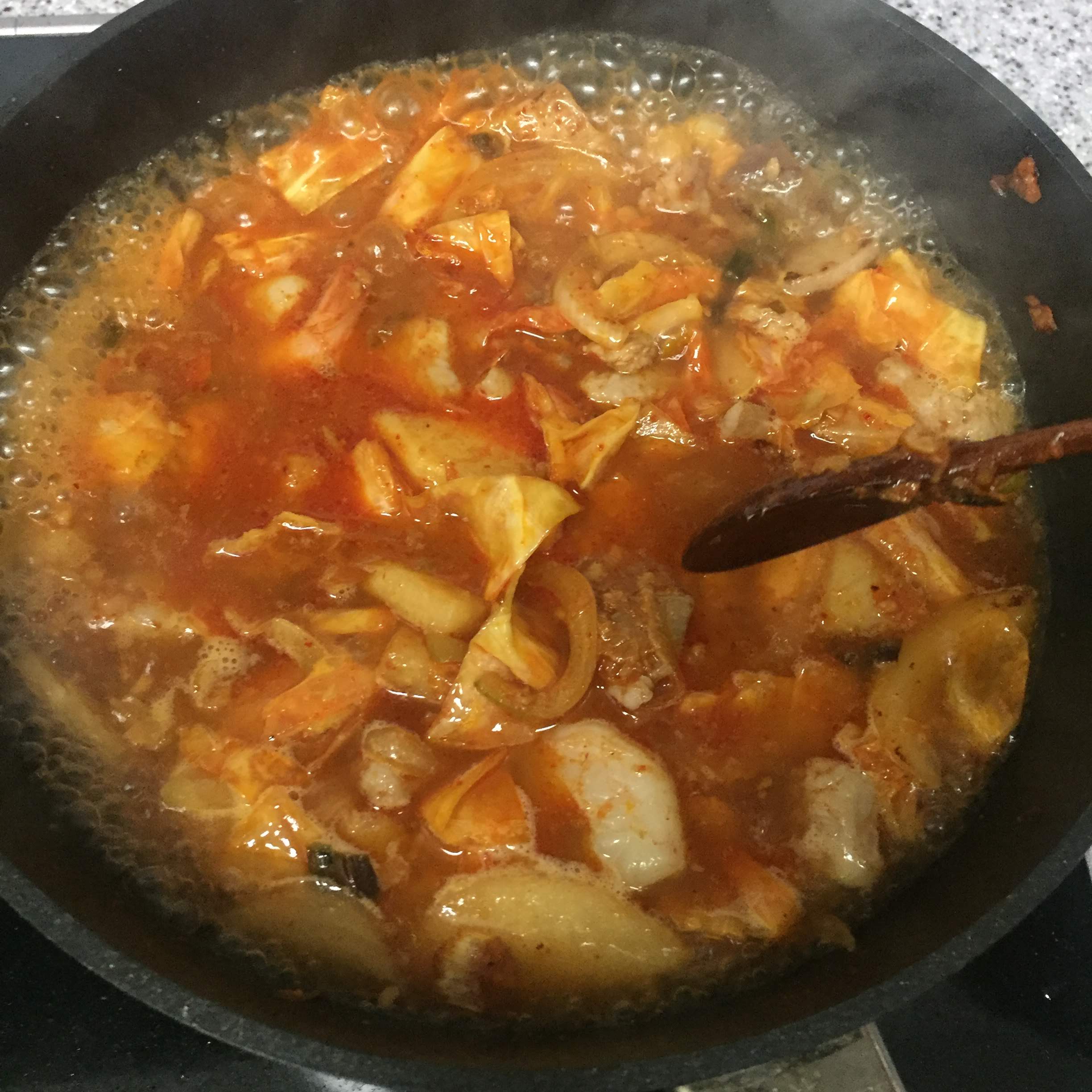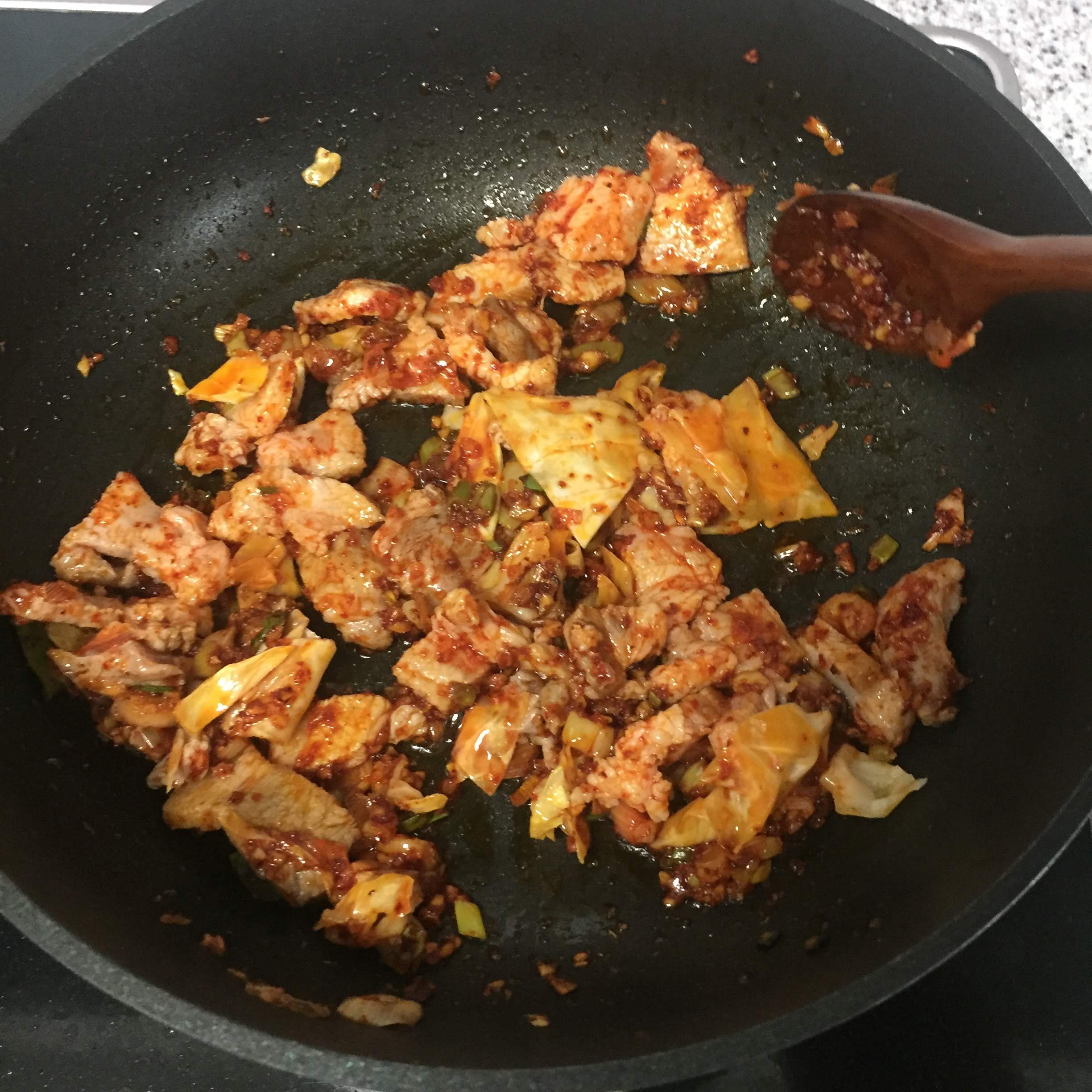 돼지고기를 넣고 살짝 익히다가