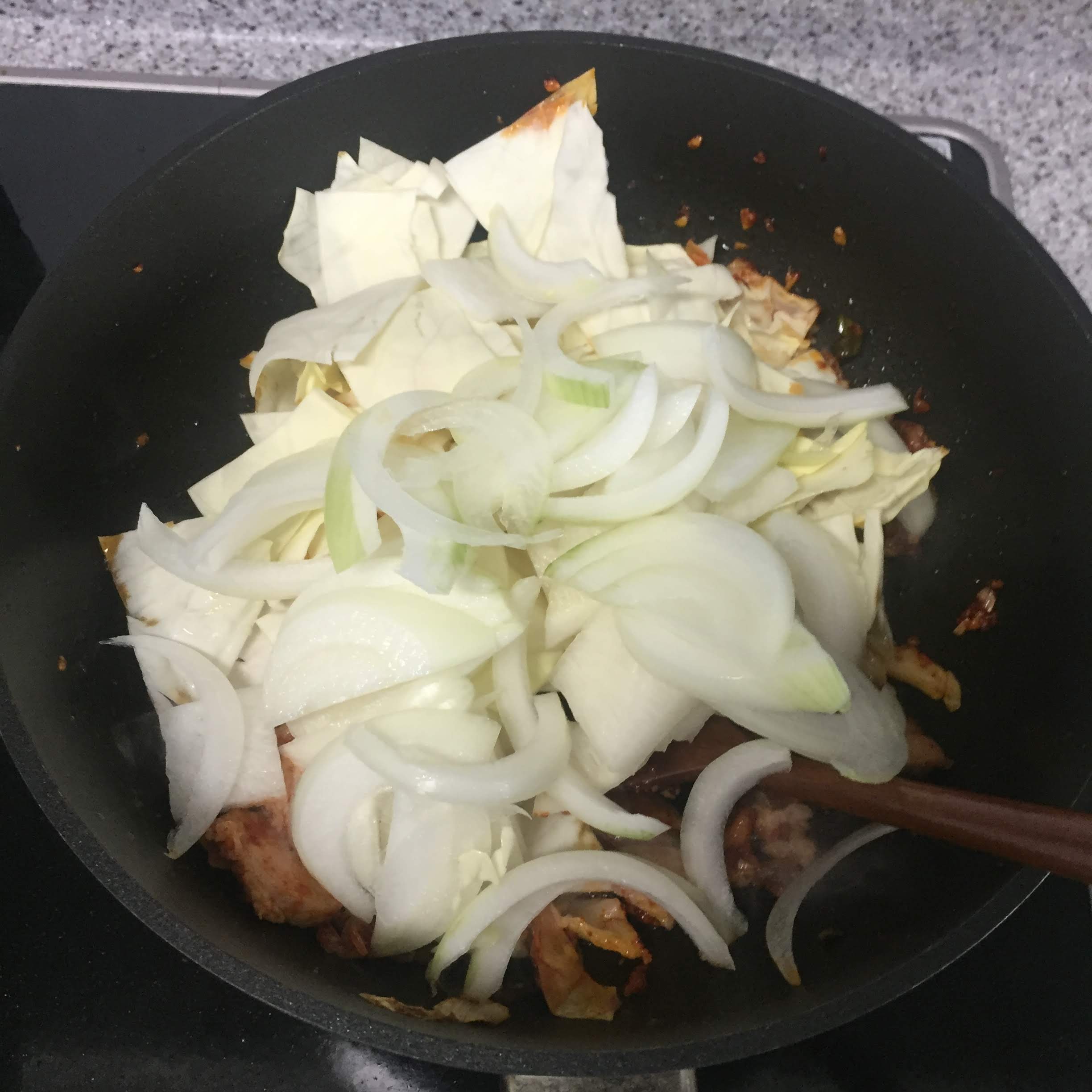 숨이 죽으면서 약간의 채수가 나올때 까지 볶습니다.