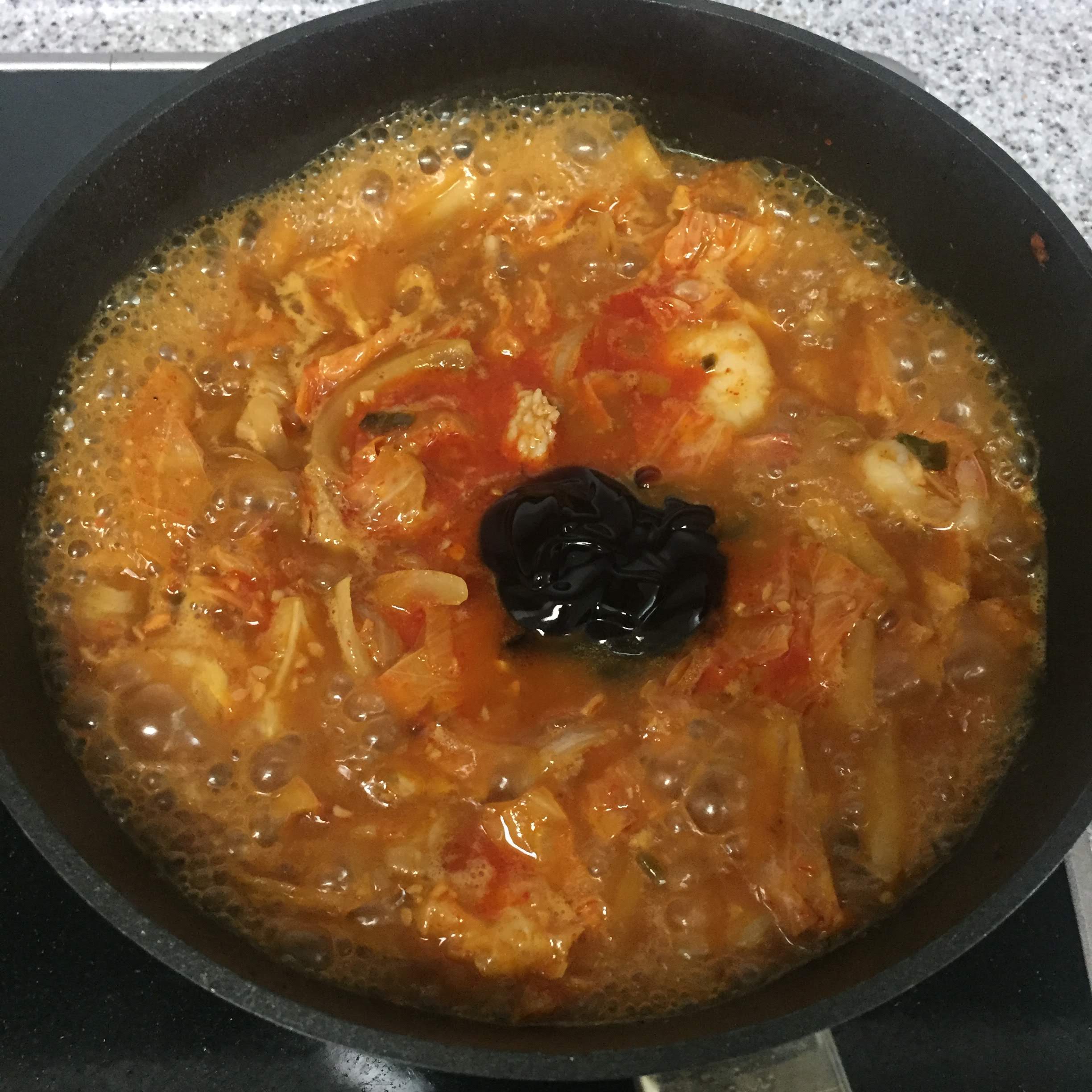 한소끔 끓거든 굴소스로 간을 해줍니다.