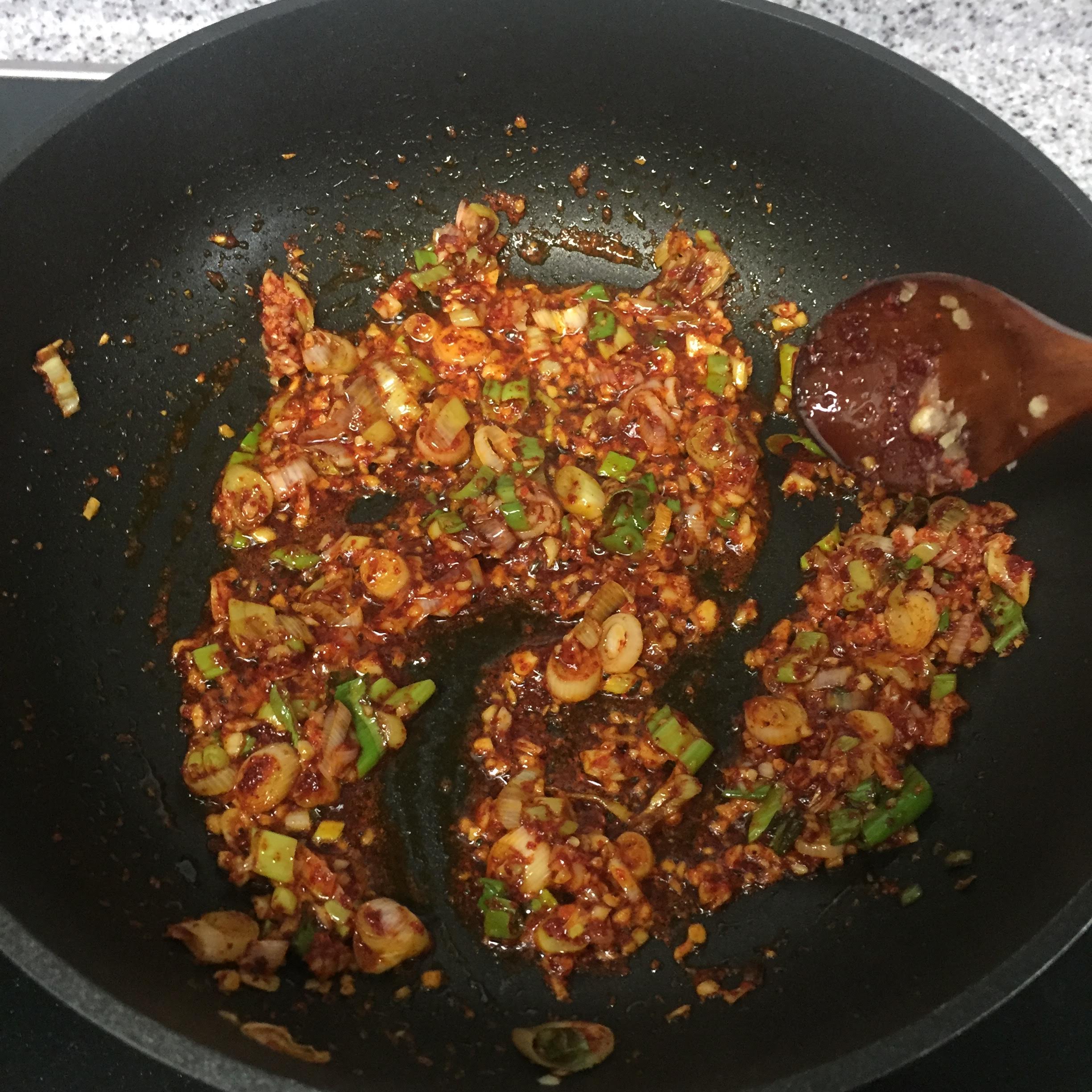 다진마늘과 고춧가루를 넣고
