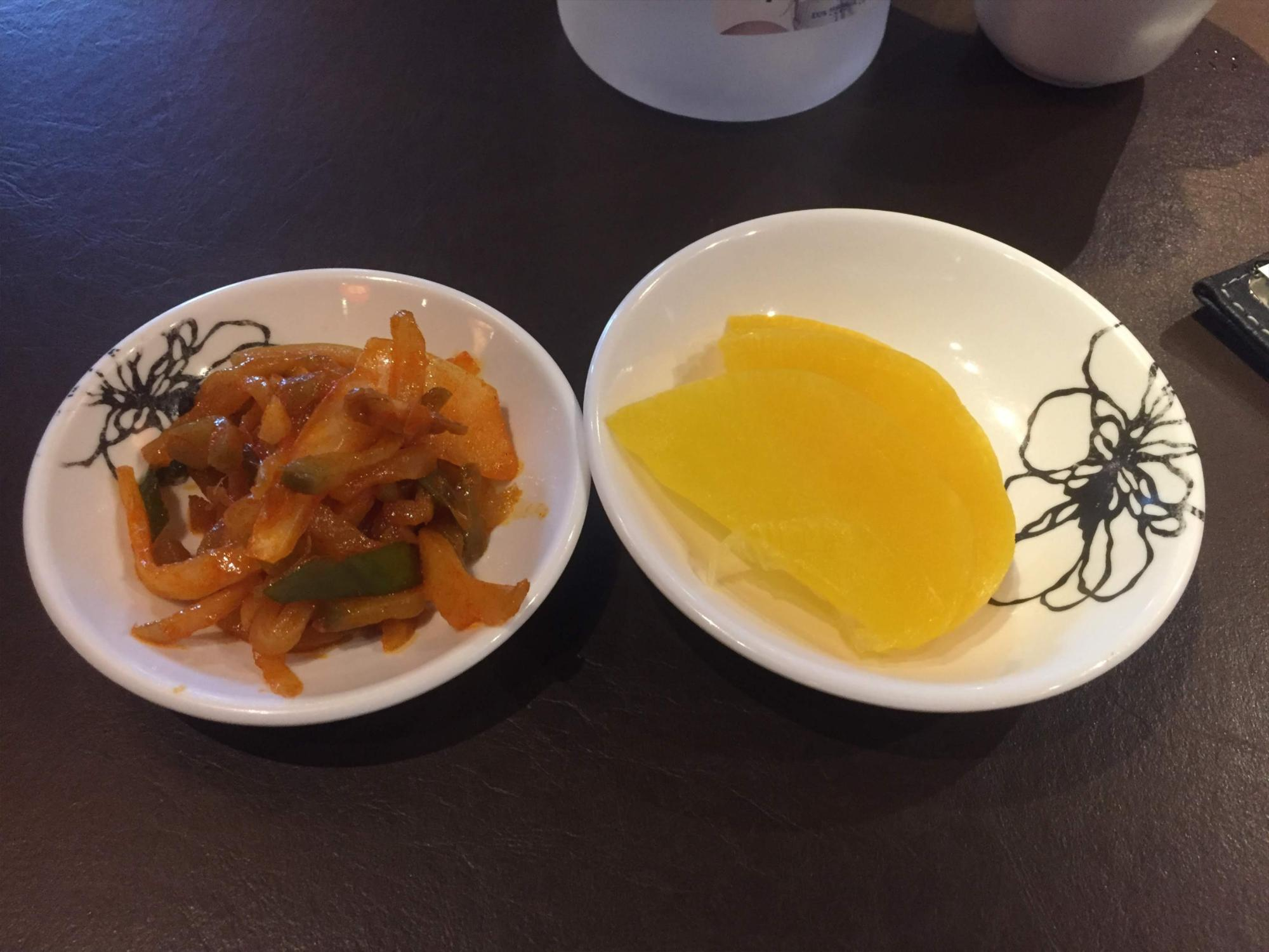 밑반찬으로 짜차이와 단무지가 나옵니다.
