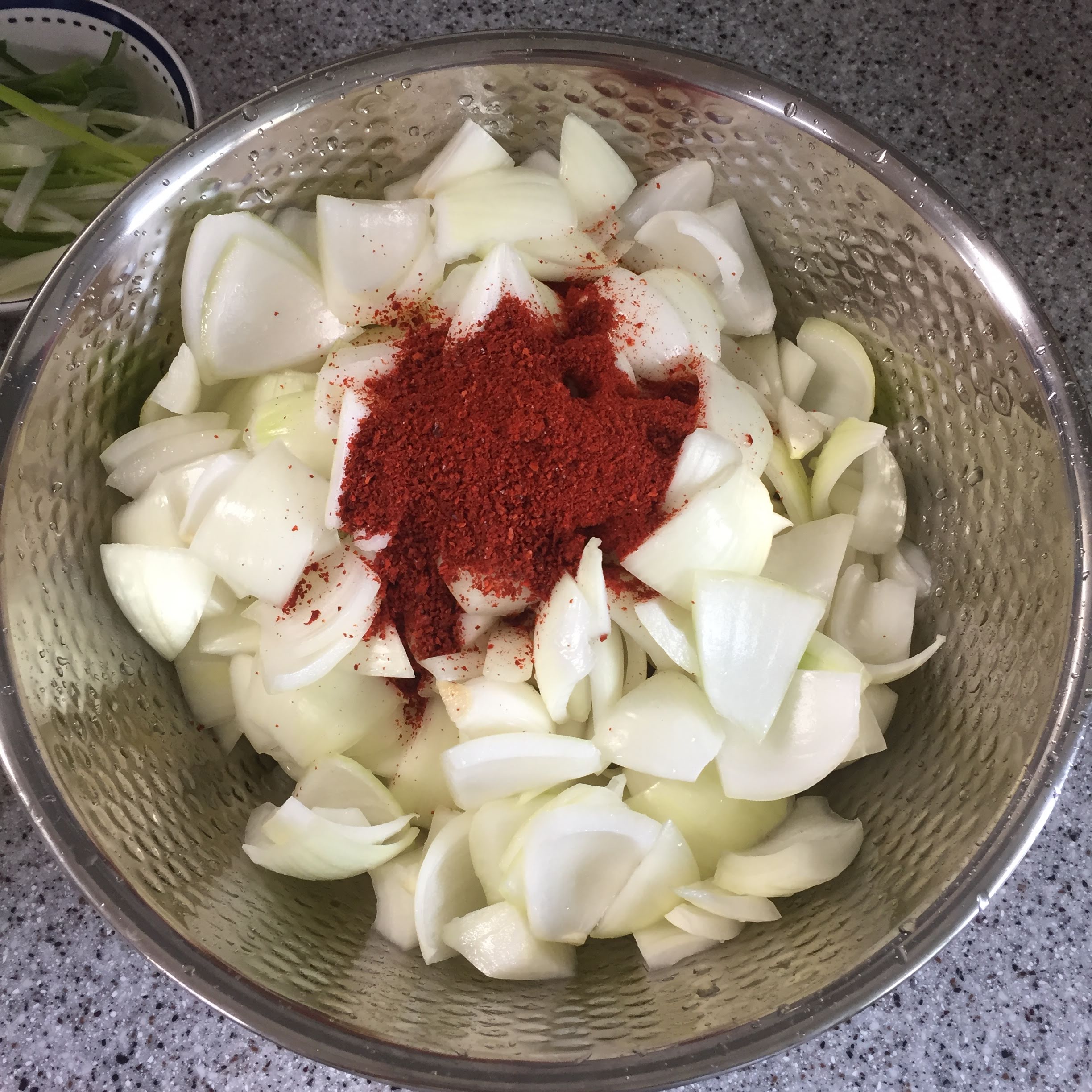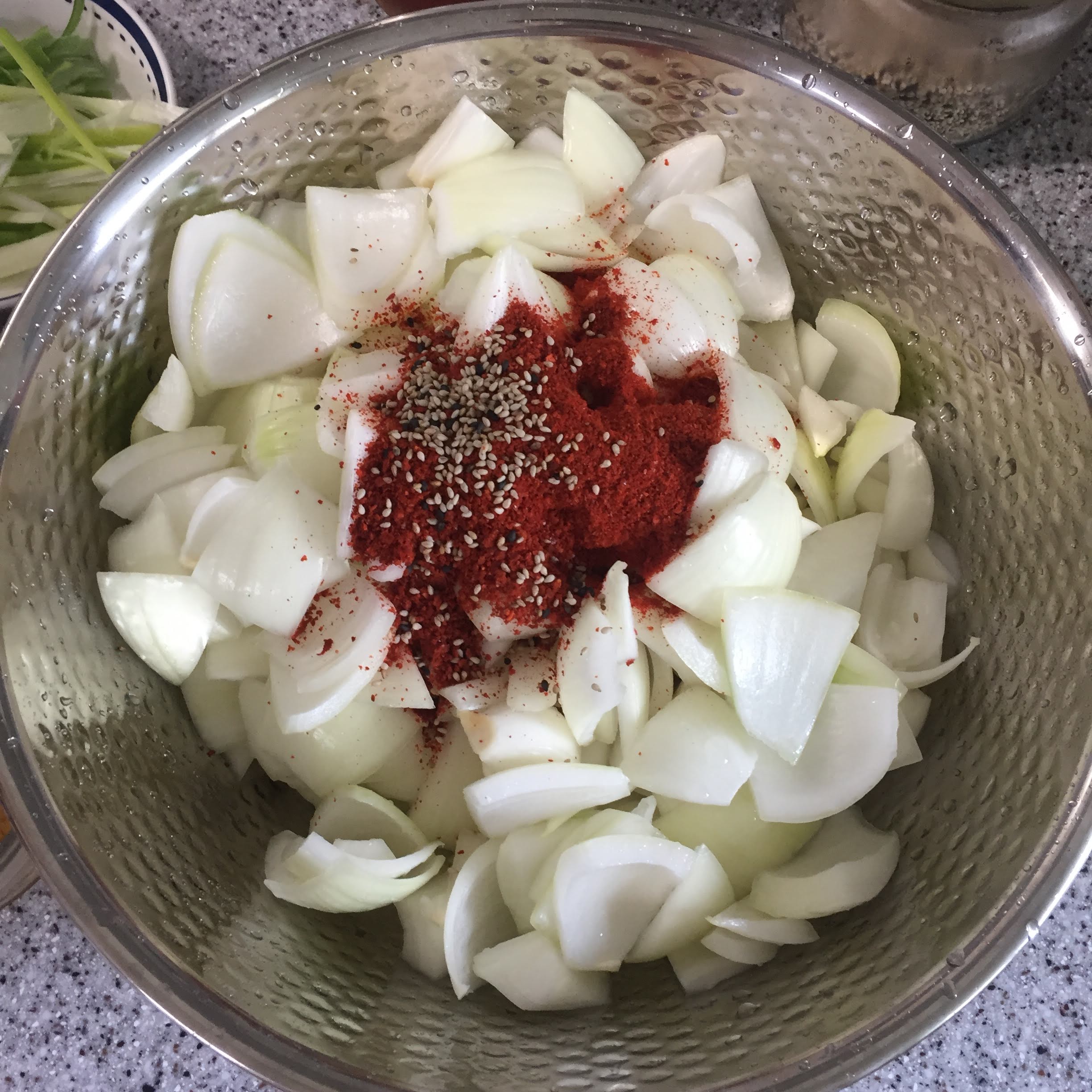 절인 양파를 가볍게 물에 헹궈