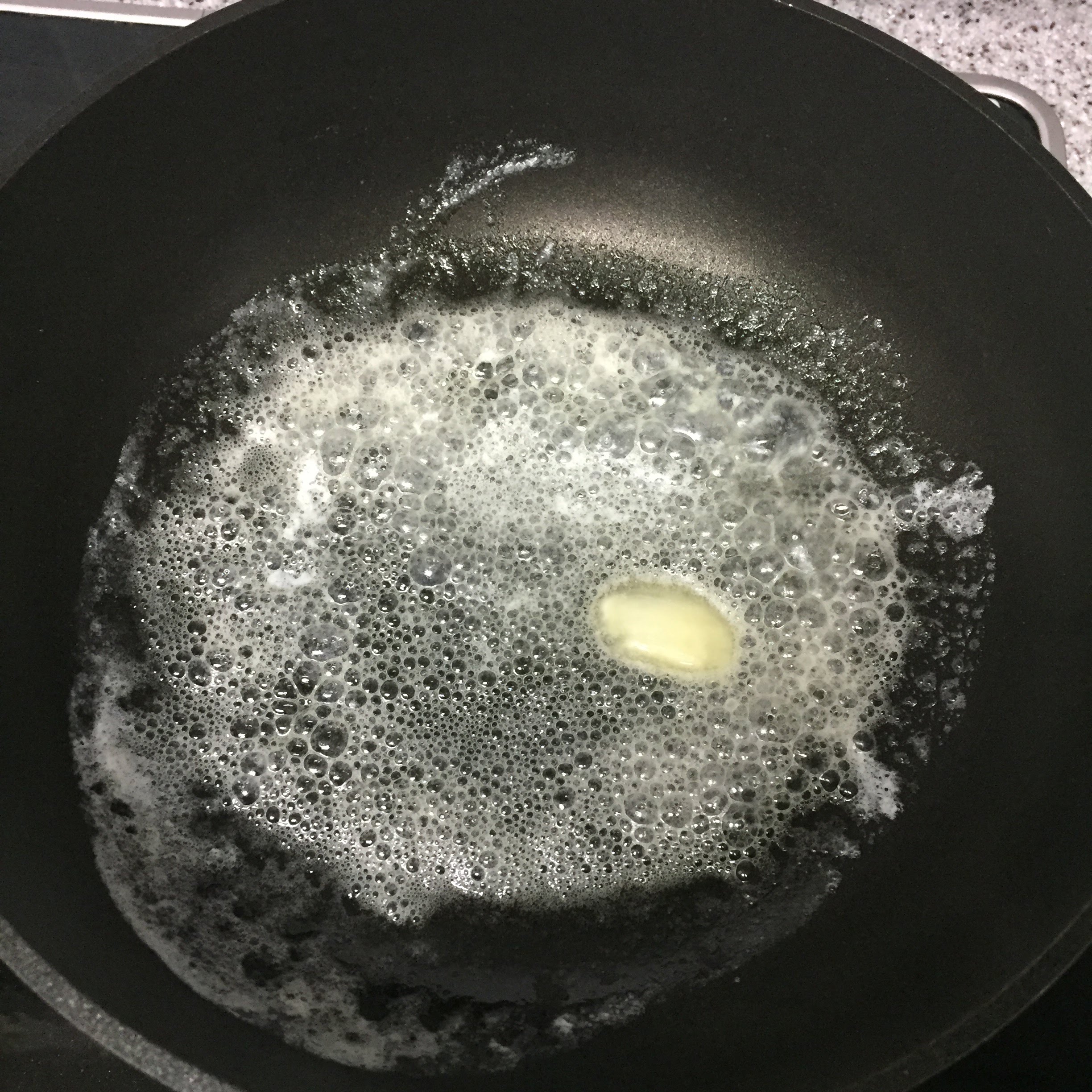 중불에 올려둔 팬에서 녹여냅니다.
