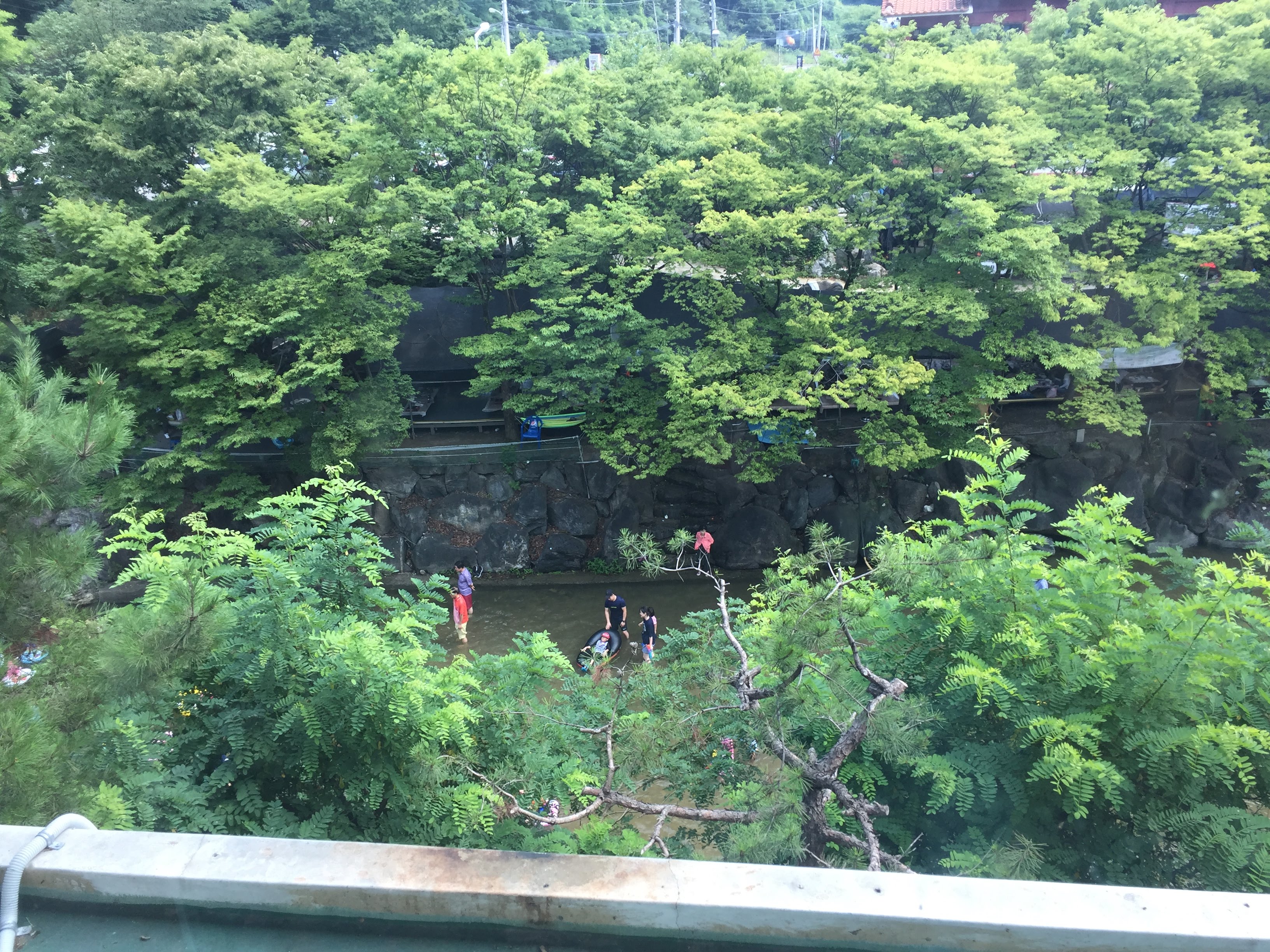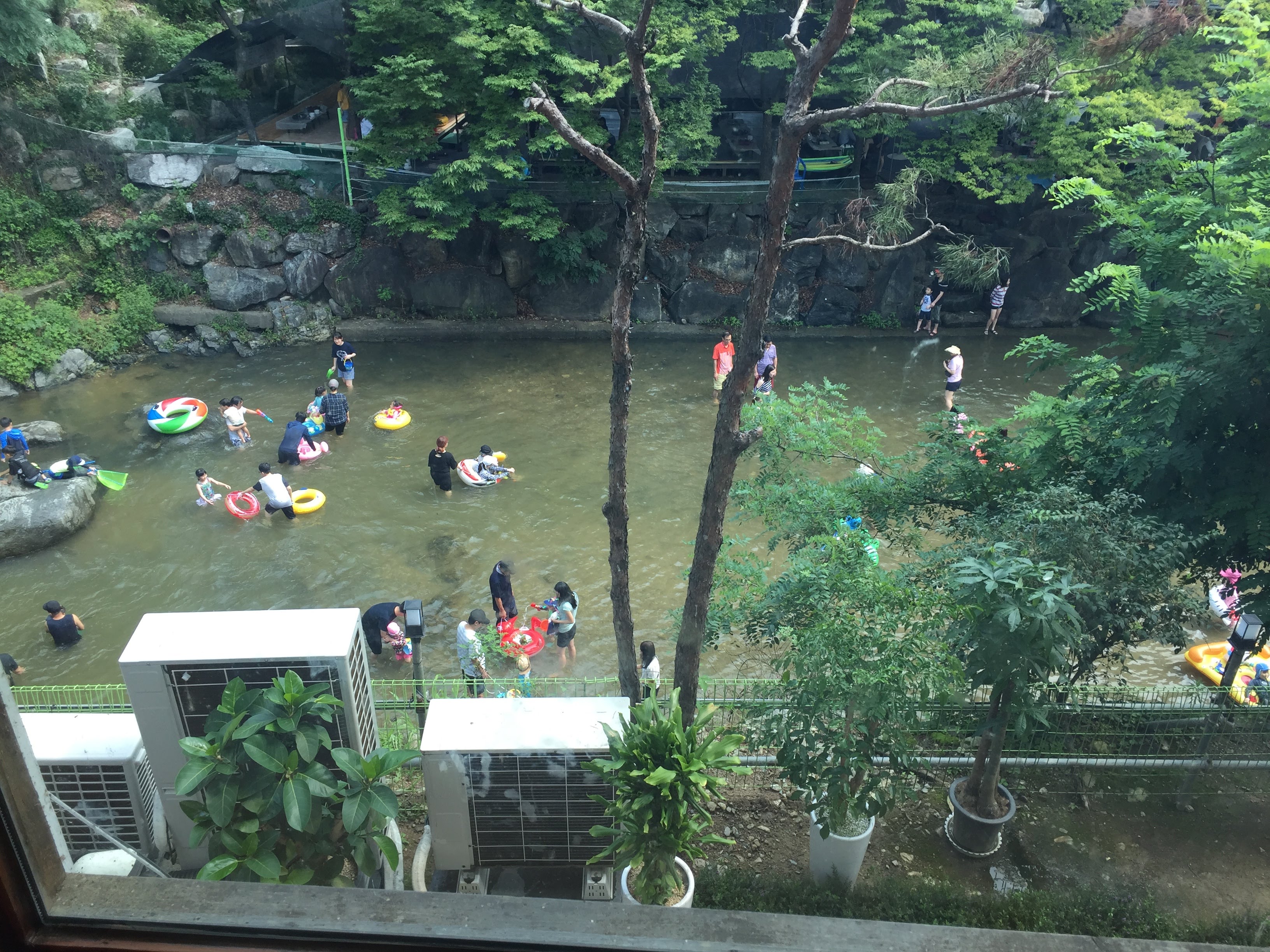 창밖에 시원하게 물놀이 하는 사람들을 구경.