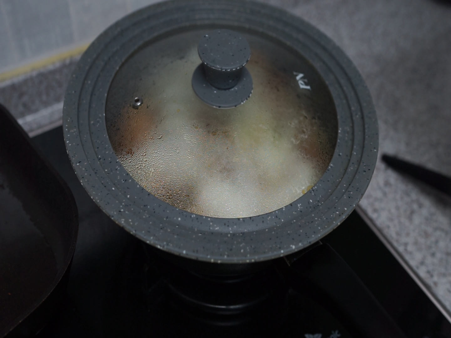 잘박하게 물을 두세스푼 정도 넣습니다.