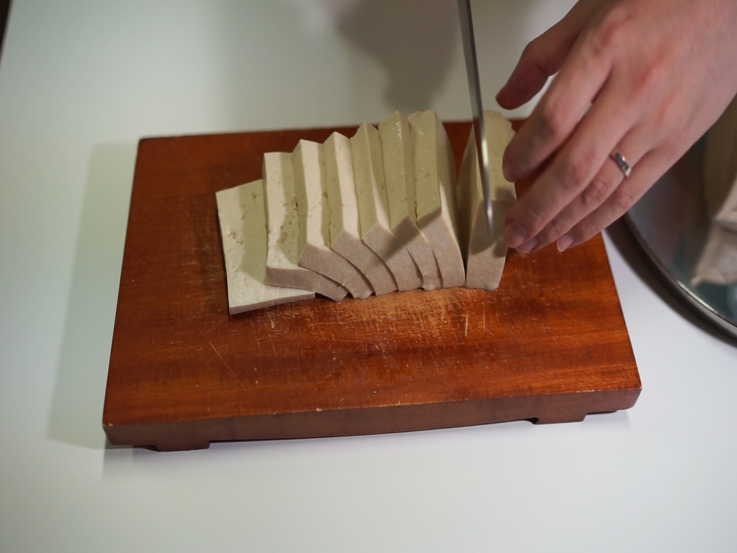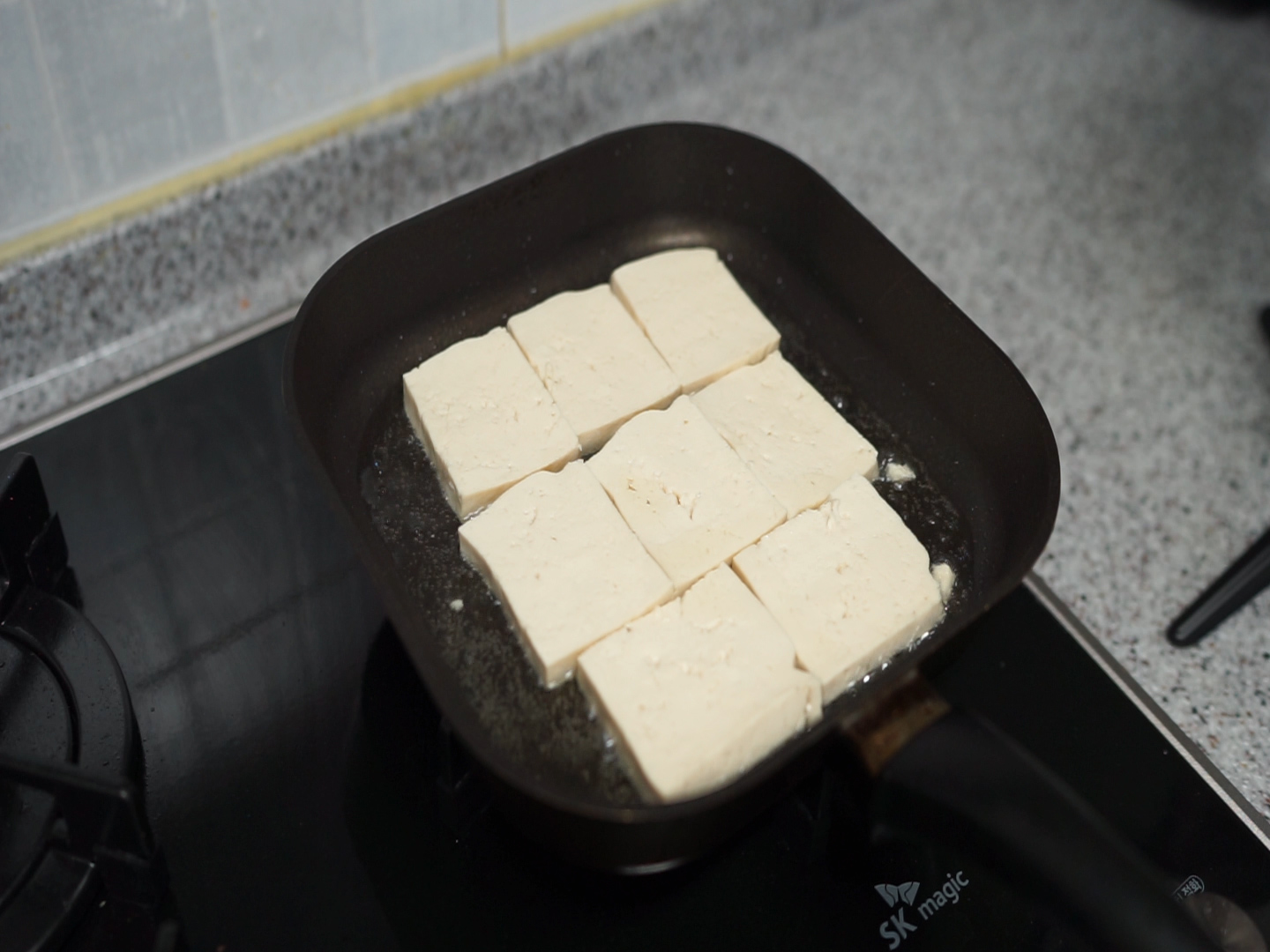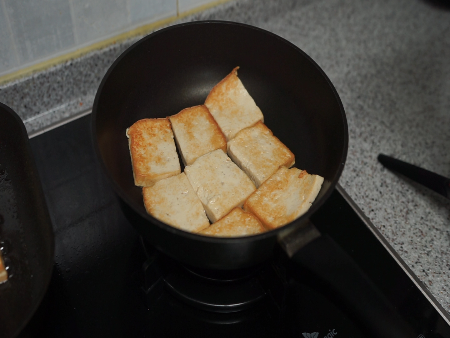 노릇하게 잘 부쳐낸 두부는 표면이 단단합니다.