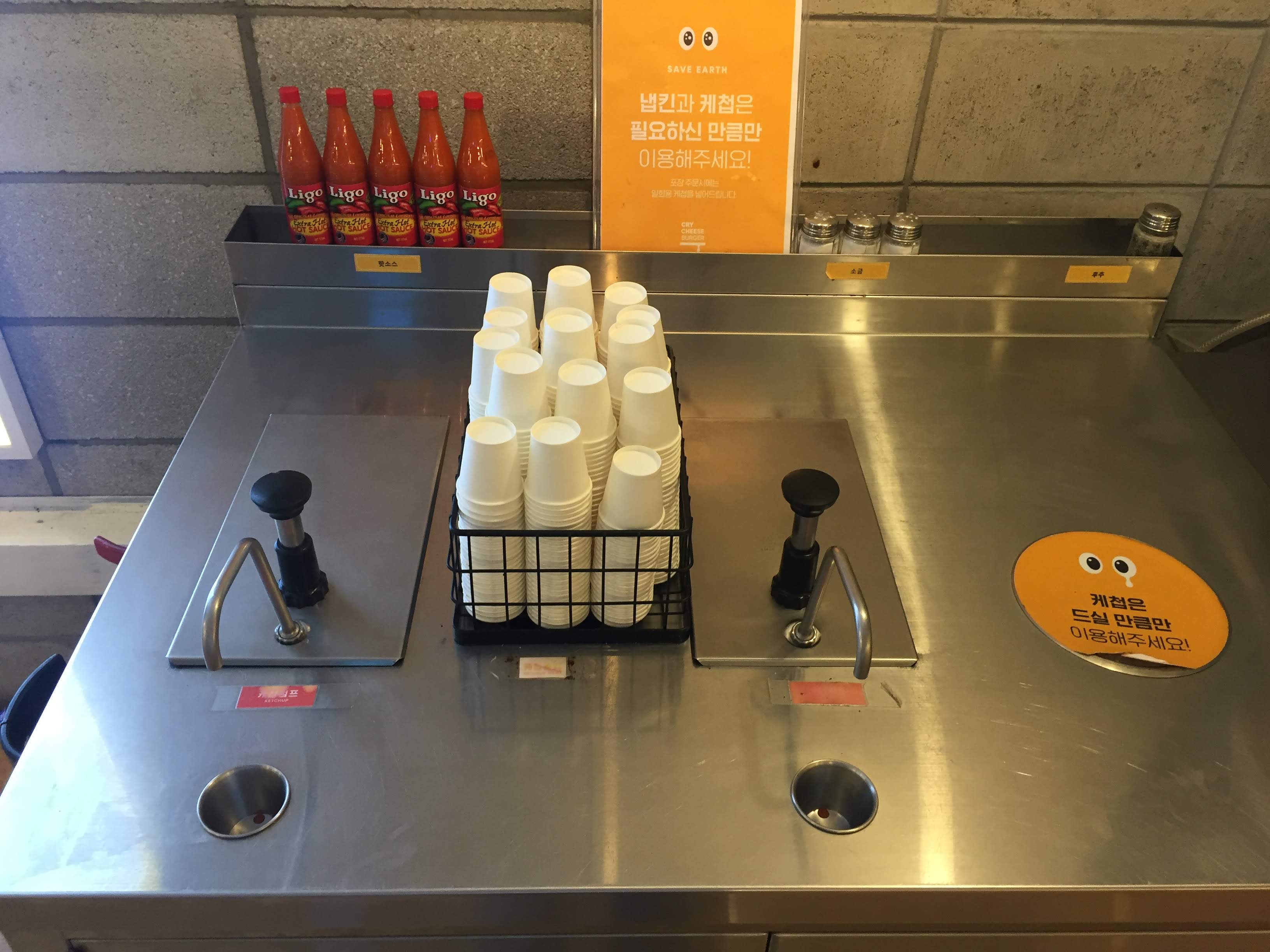 케찹을 여기서 셀프로 짜 갑니다.