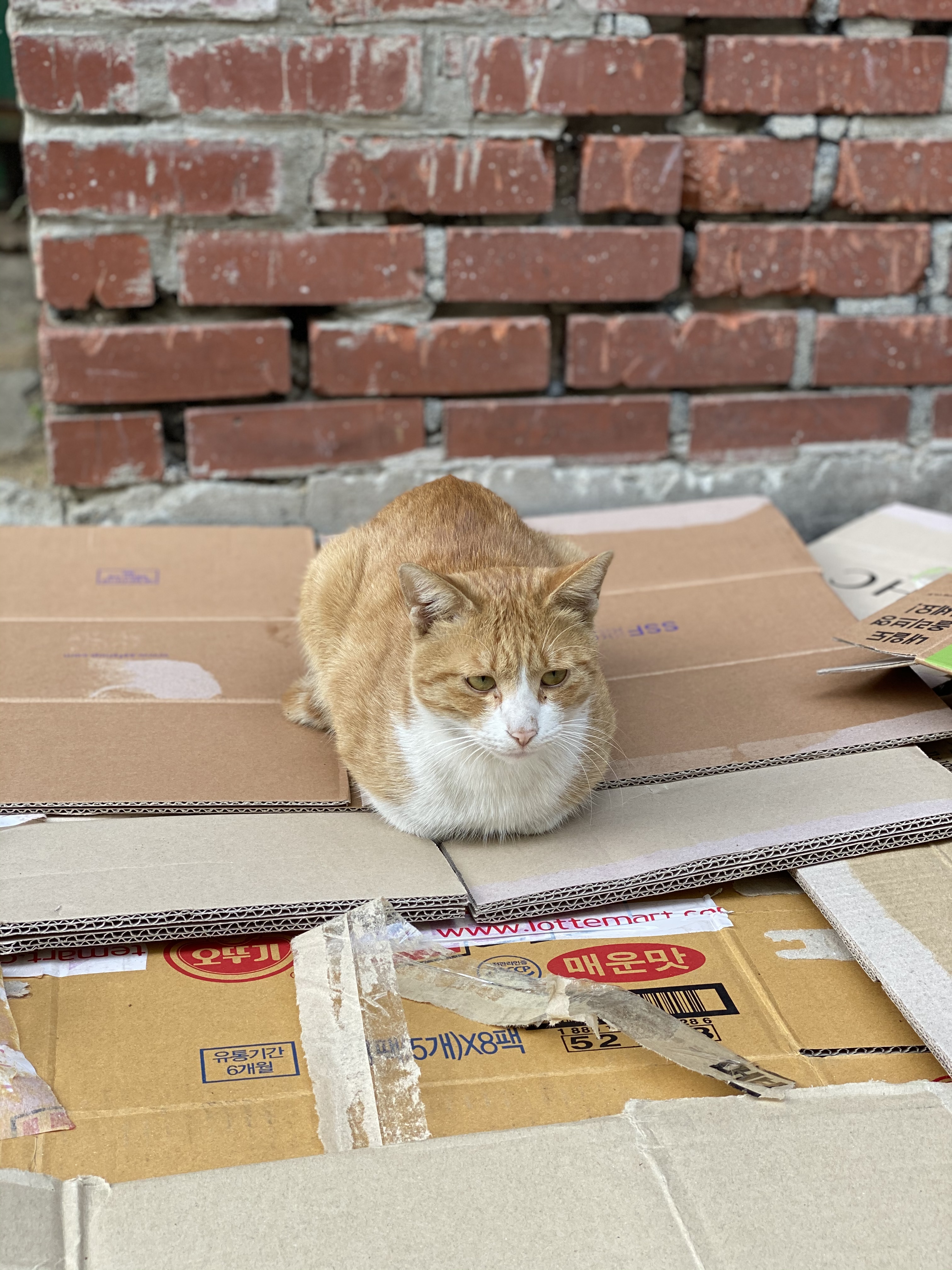 집앞 분리수거장 종이박스 위를 차지하고있는