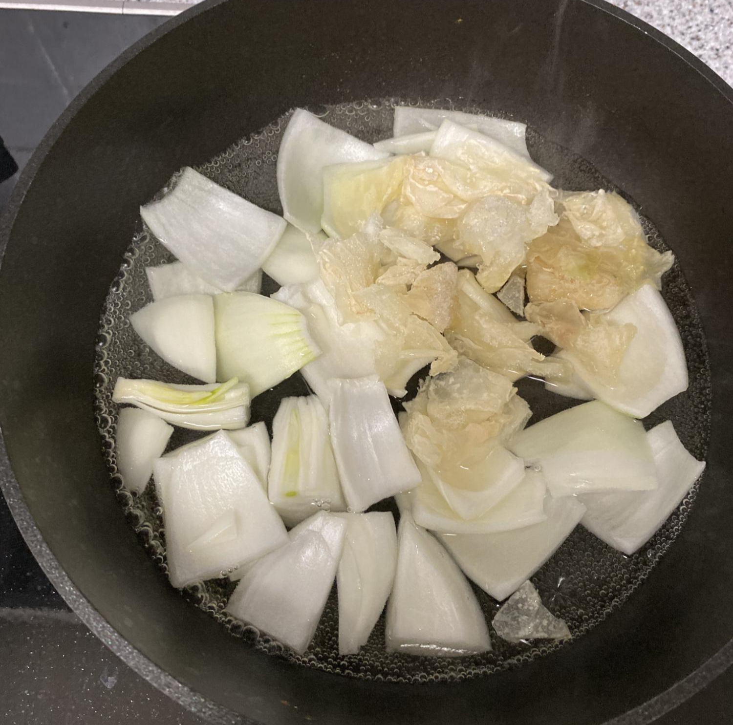 물은 넉넉하게 매우 넉넉하게 잡습니다.