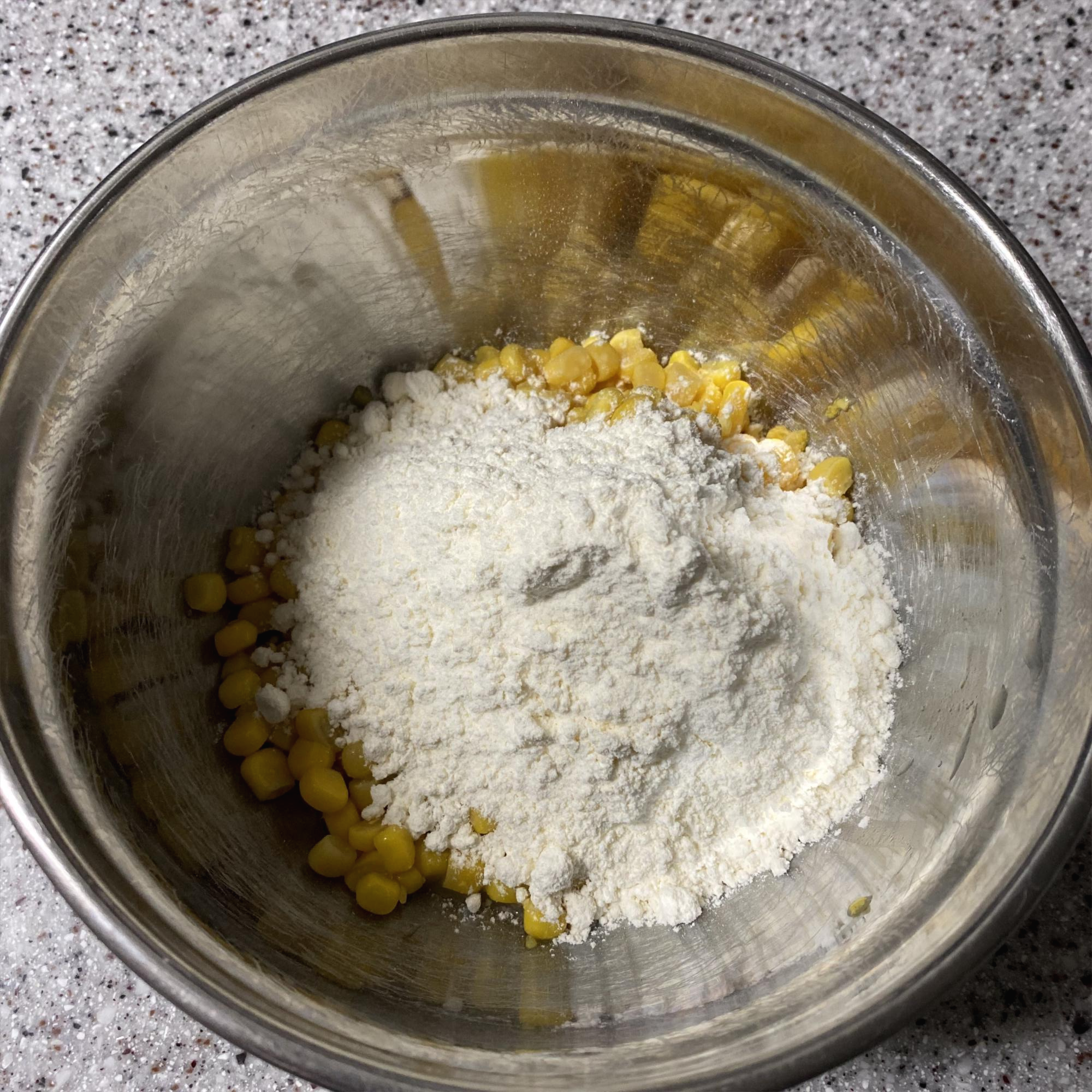옥수수에 그냥 부침가루를 1:1 비율로 넣습니다.