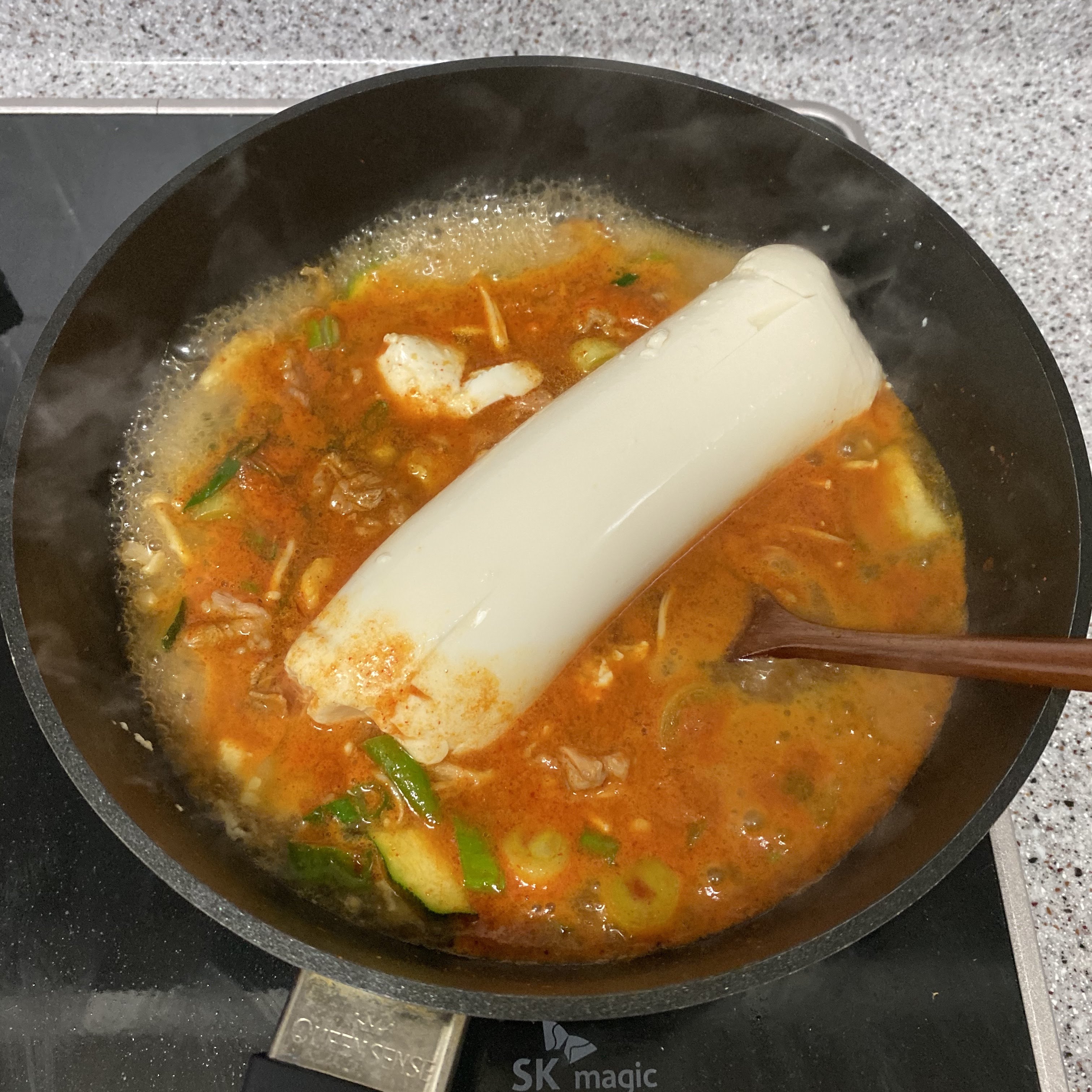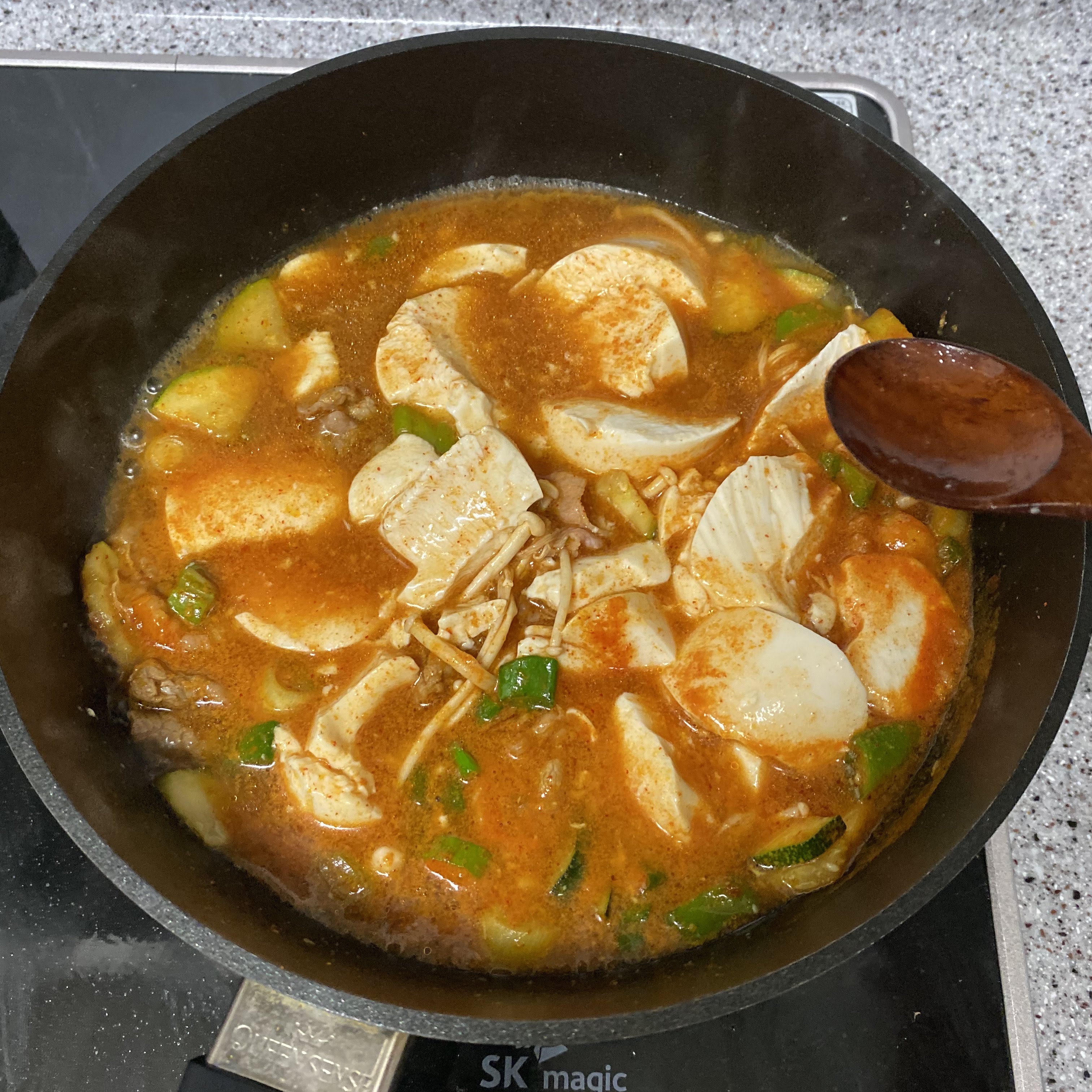 물과 순두부를 넣어 끓였습니다.