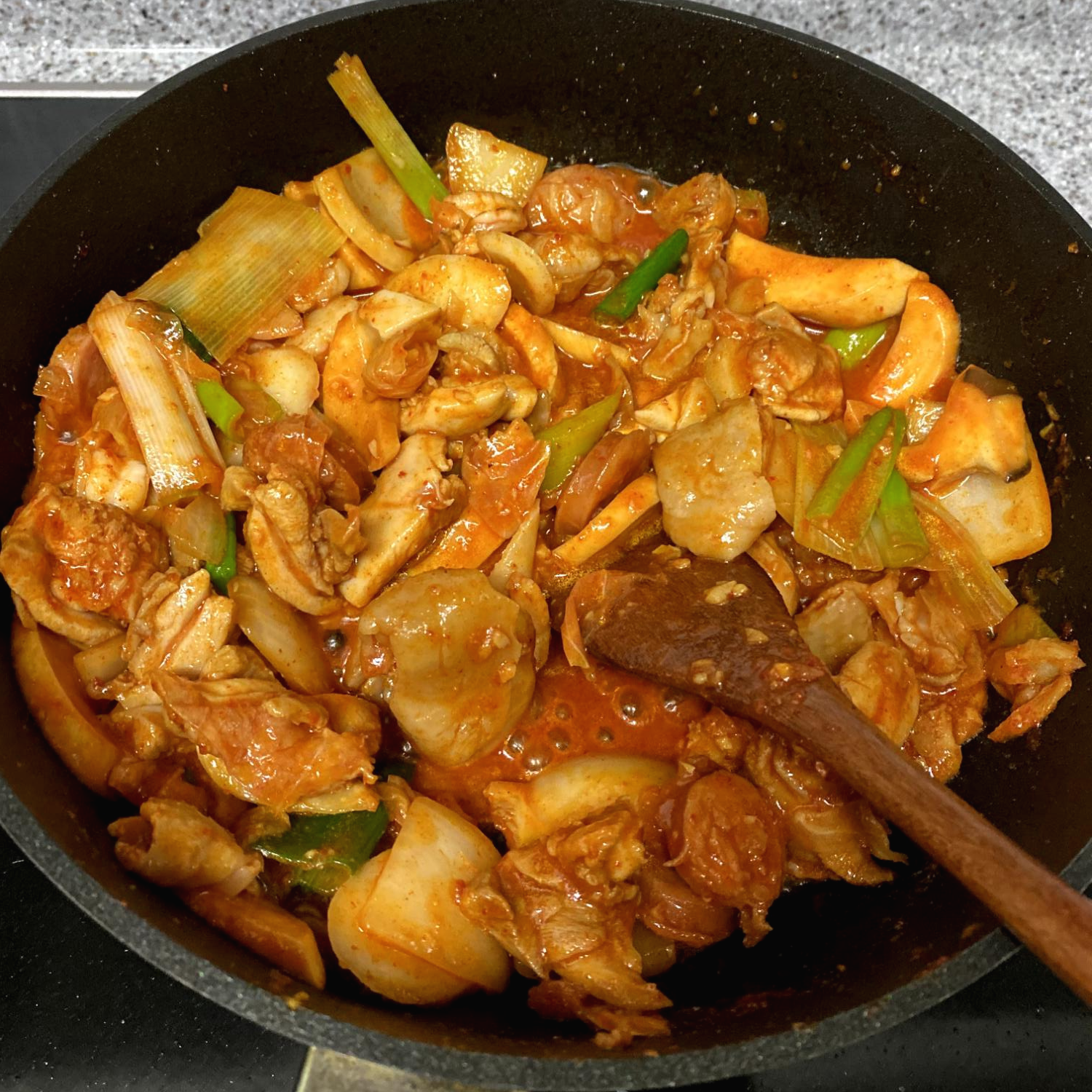 이제 잘 볶아주기만 하면 되는데,