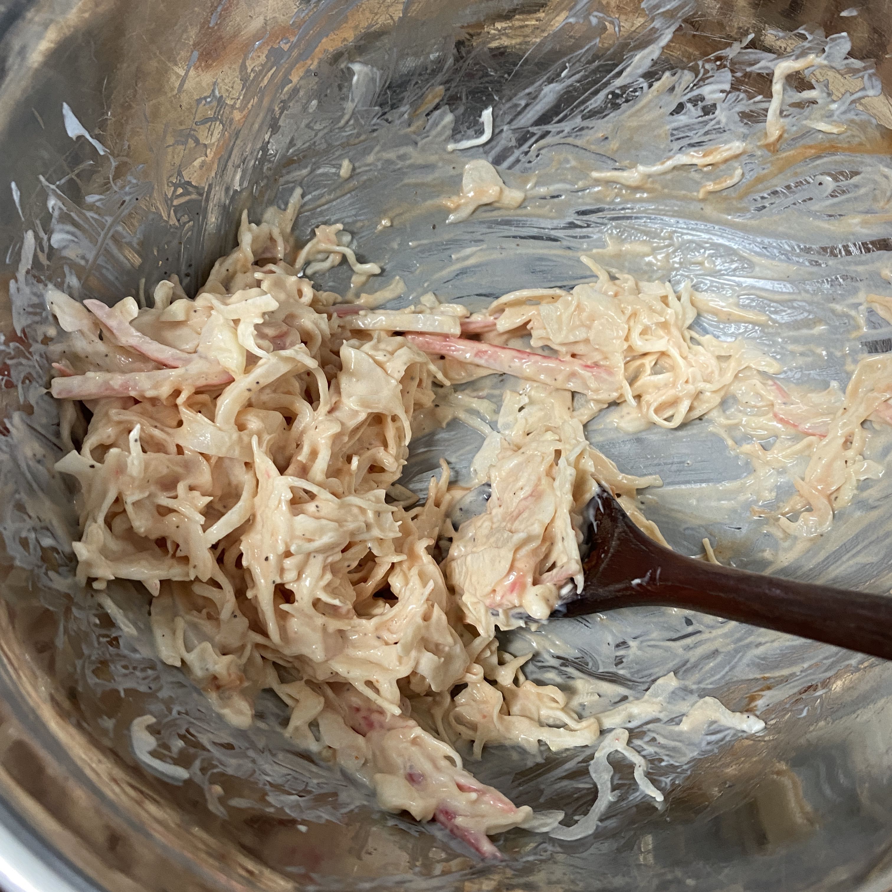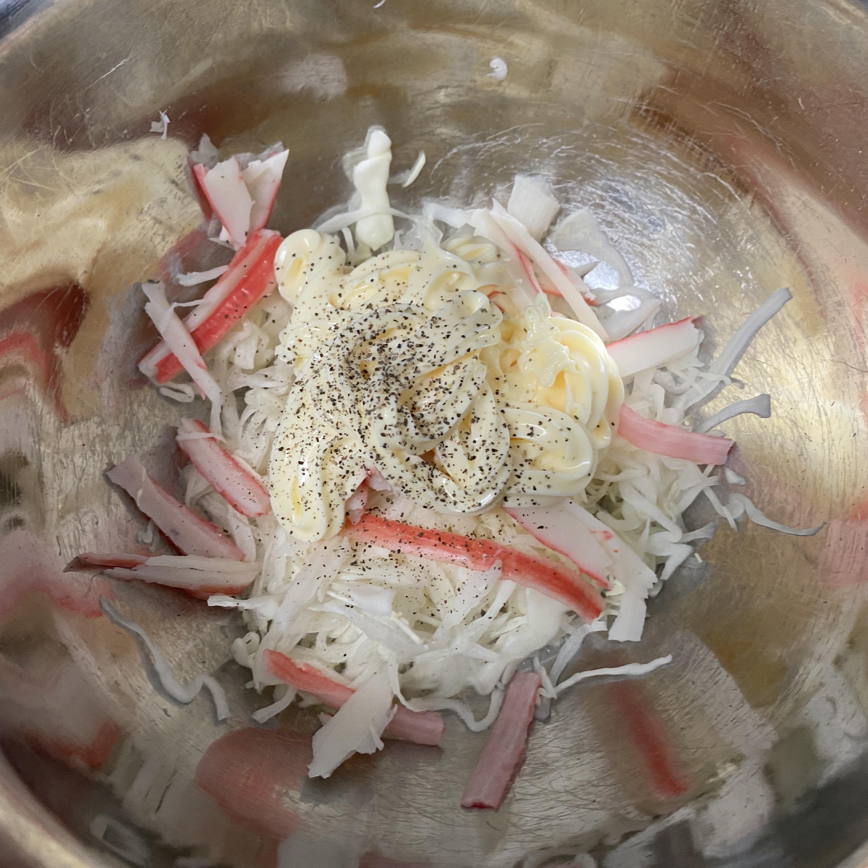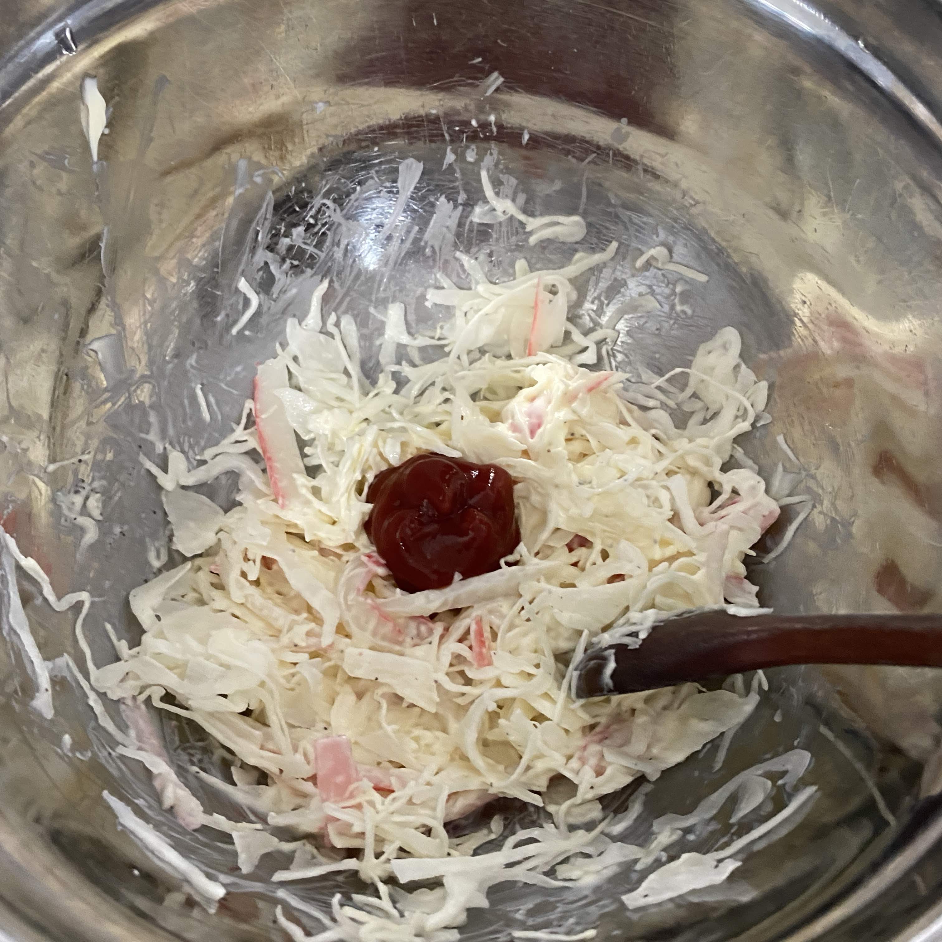 마요네즈, 후추, 케첩을 넣고 잘 섞습니다.