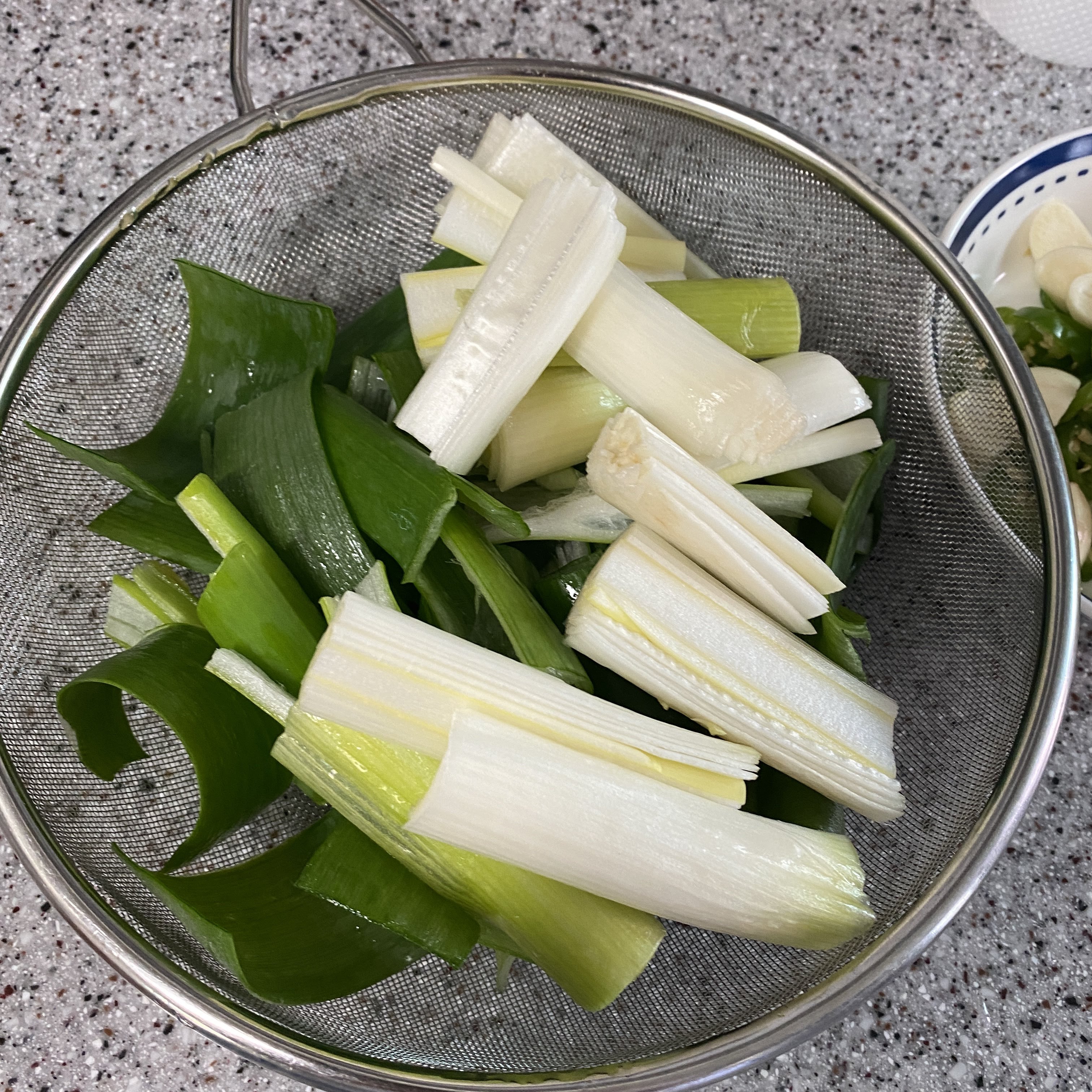 대파는 세로로 반 썰어서 큼직하게 잡고,