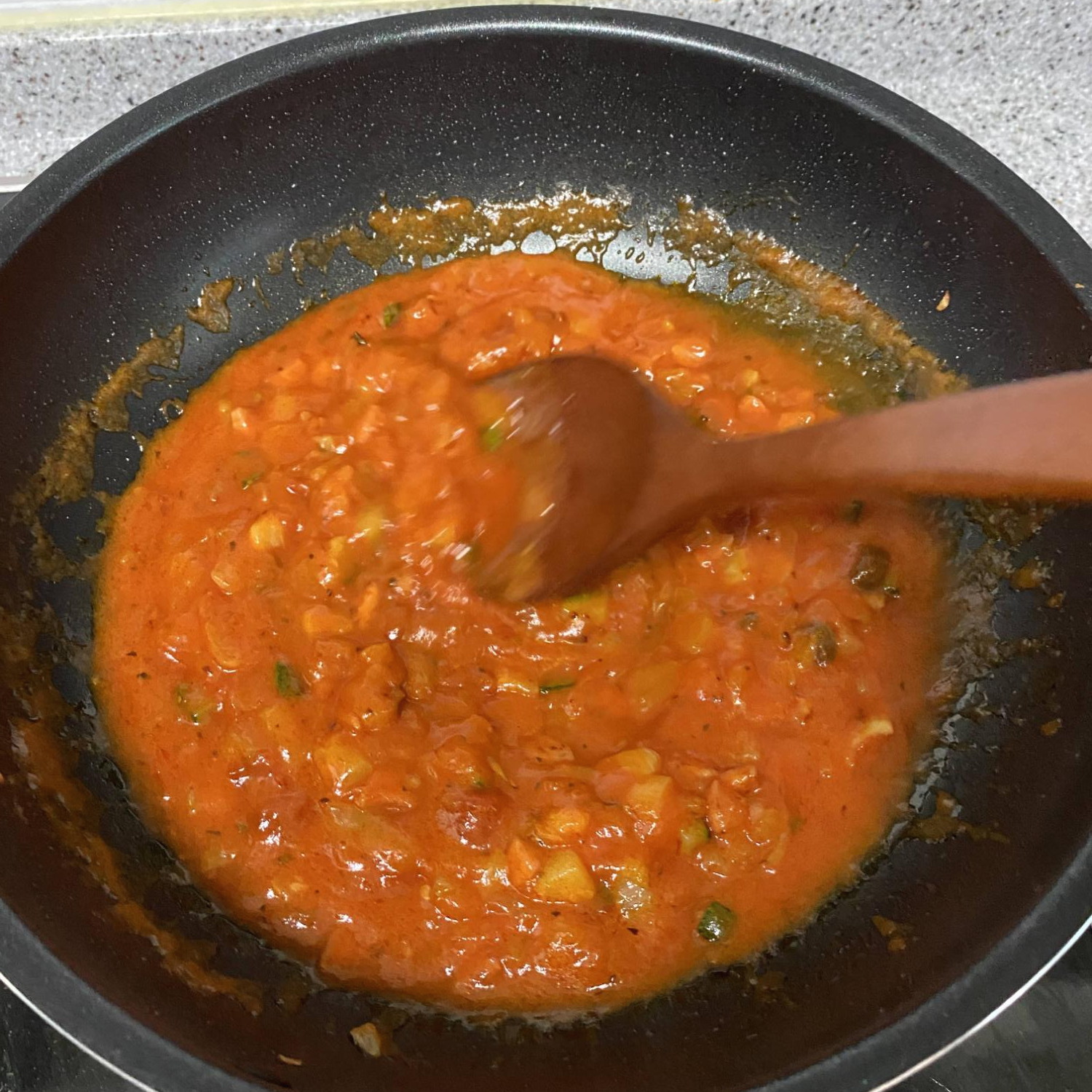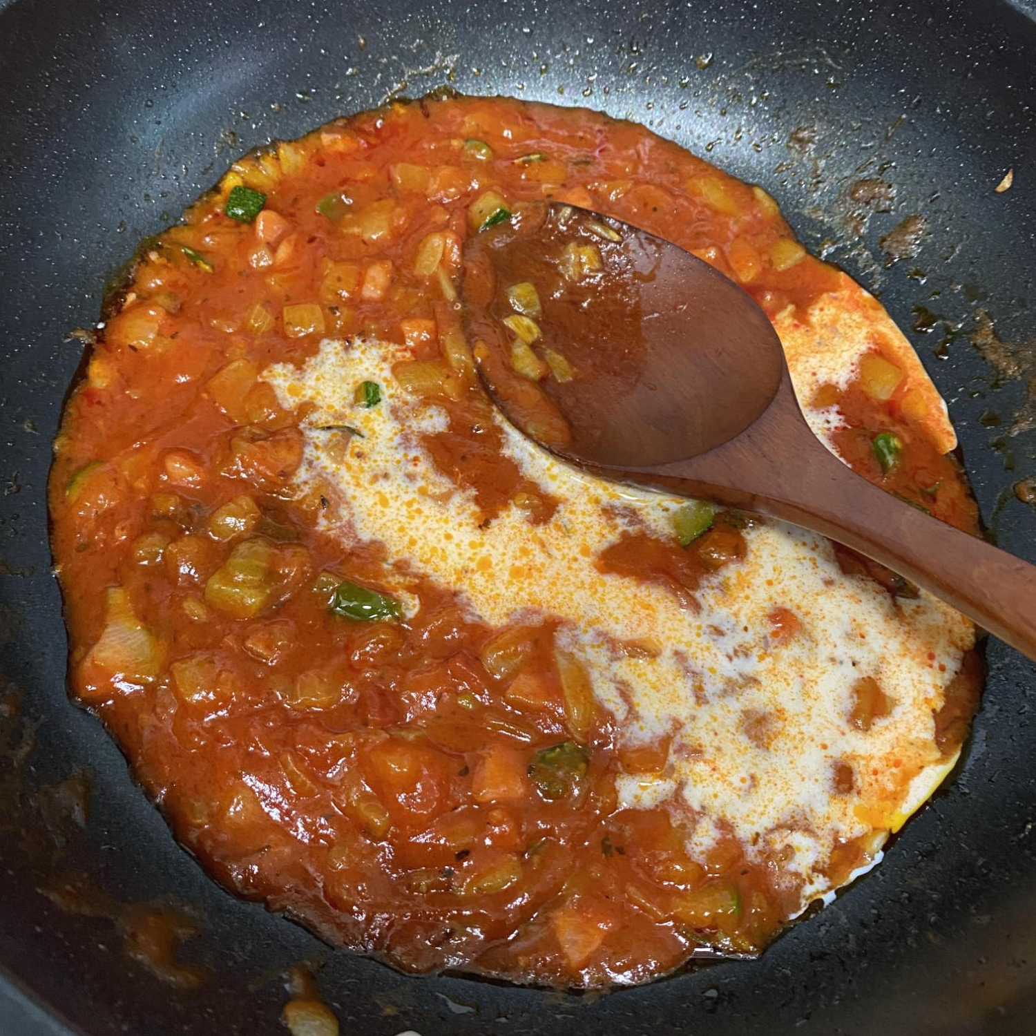 토마토소스와 우유를 넣고