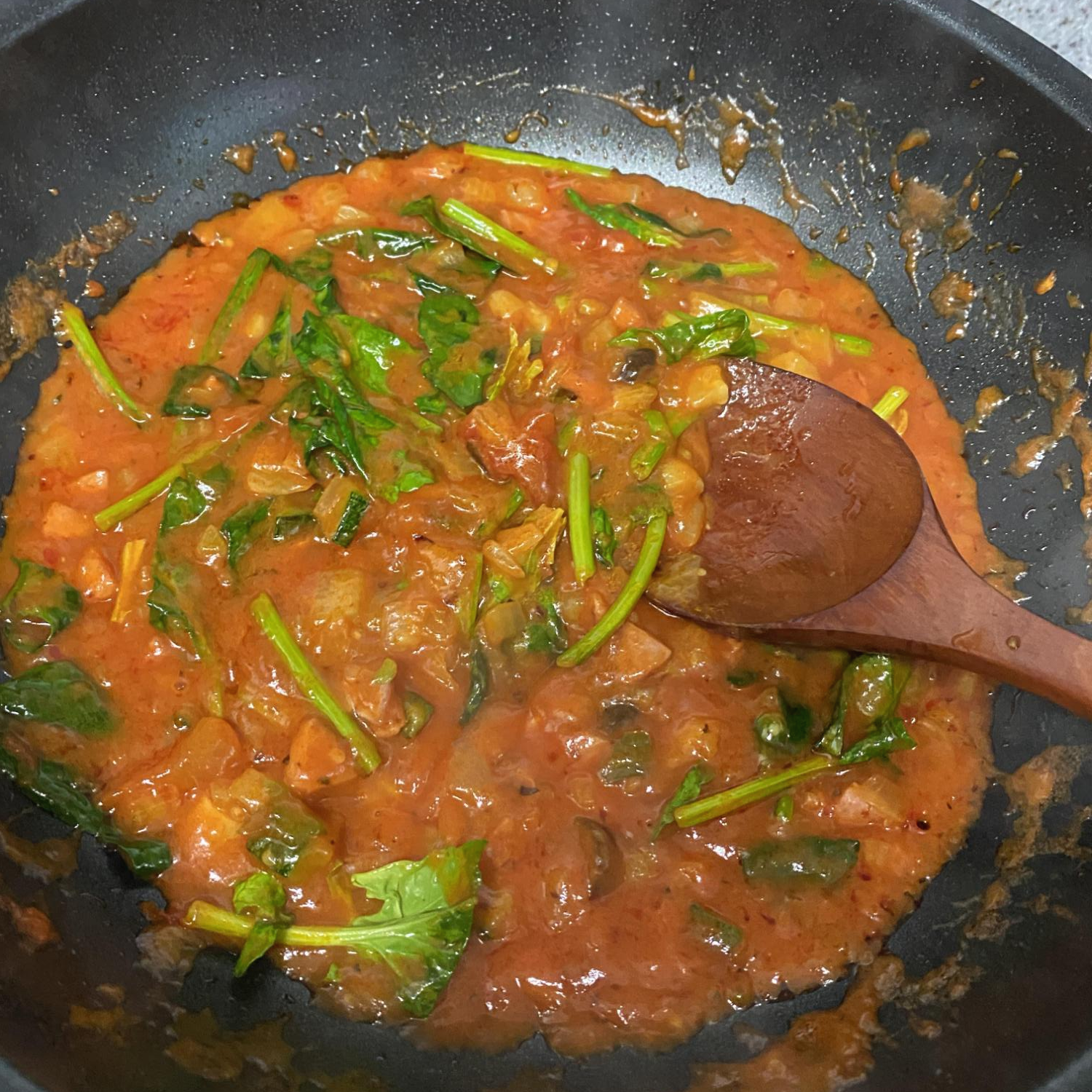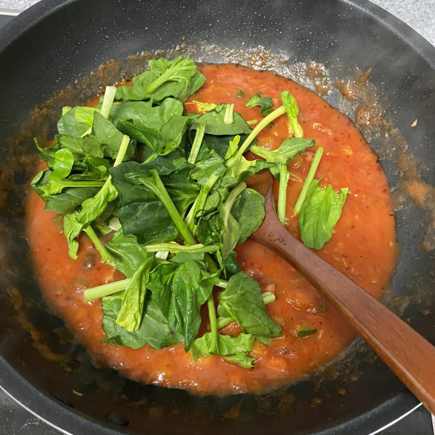 마지막으로 시금치를 넣고 숨을 죽인 뒤