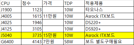 저의 선택지는 J4005아니면 J5040입니다. ASROCK에서 ITX보드로 팔고 있어서
