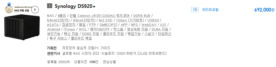 | 02. NAS란 대체 무엇인가? 어떤 NAS를 사야 하는가? (4) | 2021.01.23 |