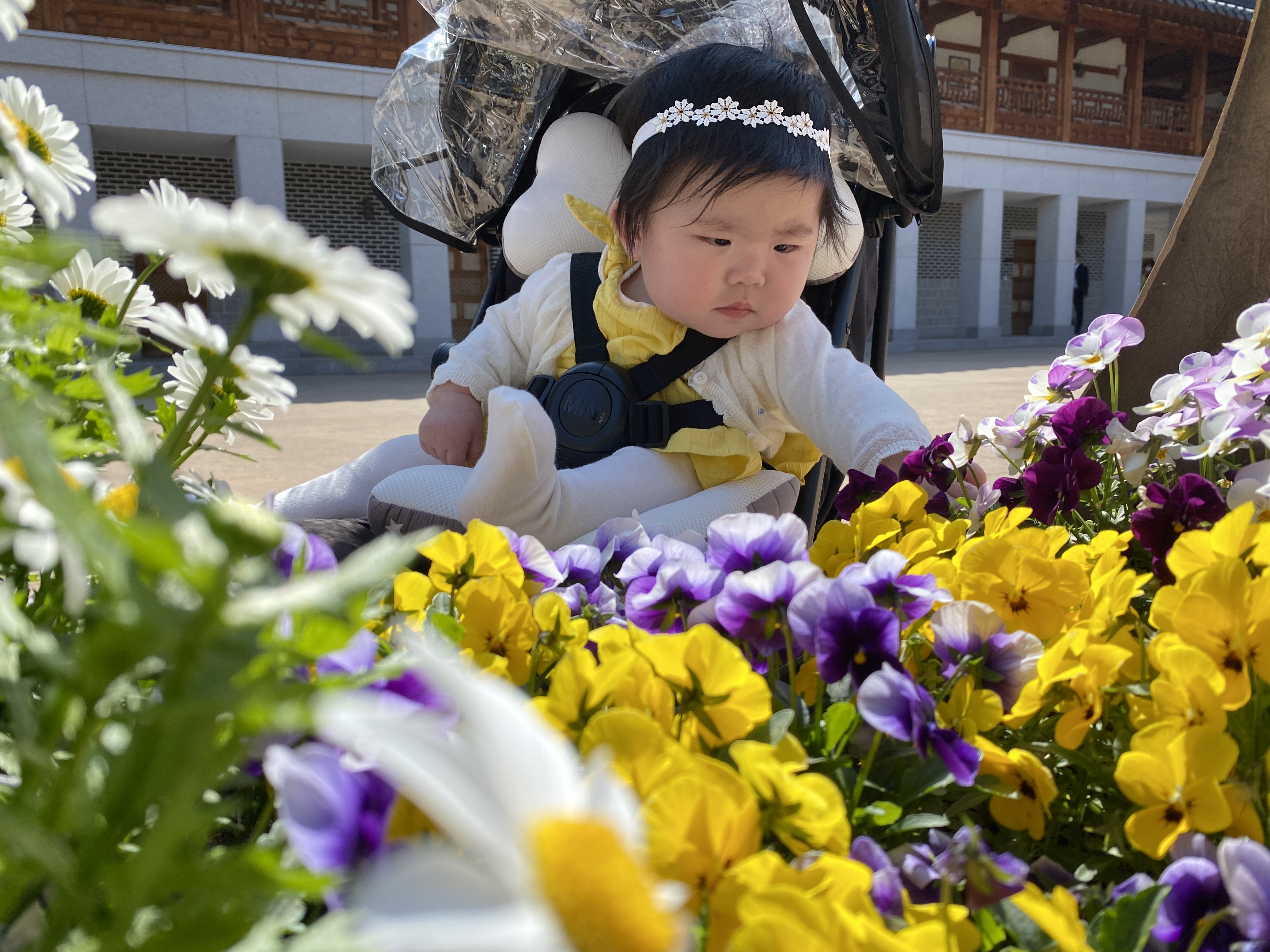 꽃이 신기한 이하린씨. 쫄보주제에 꽃에는 손이 불쑥불쑥 나가네요~