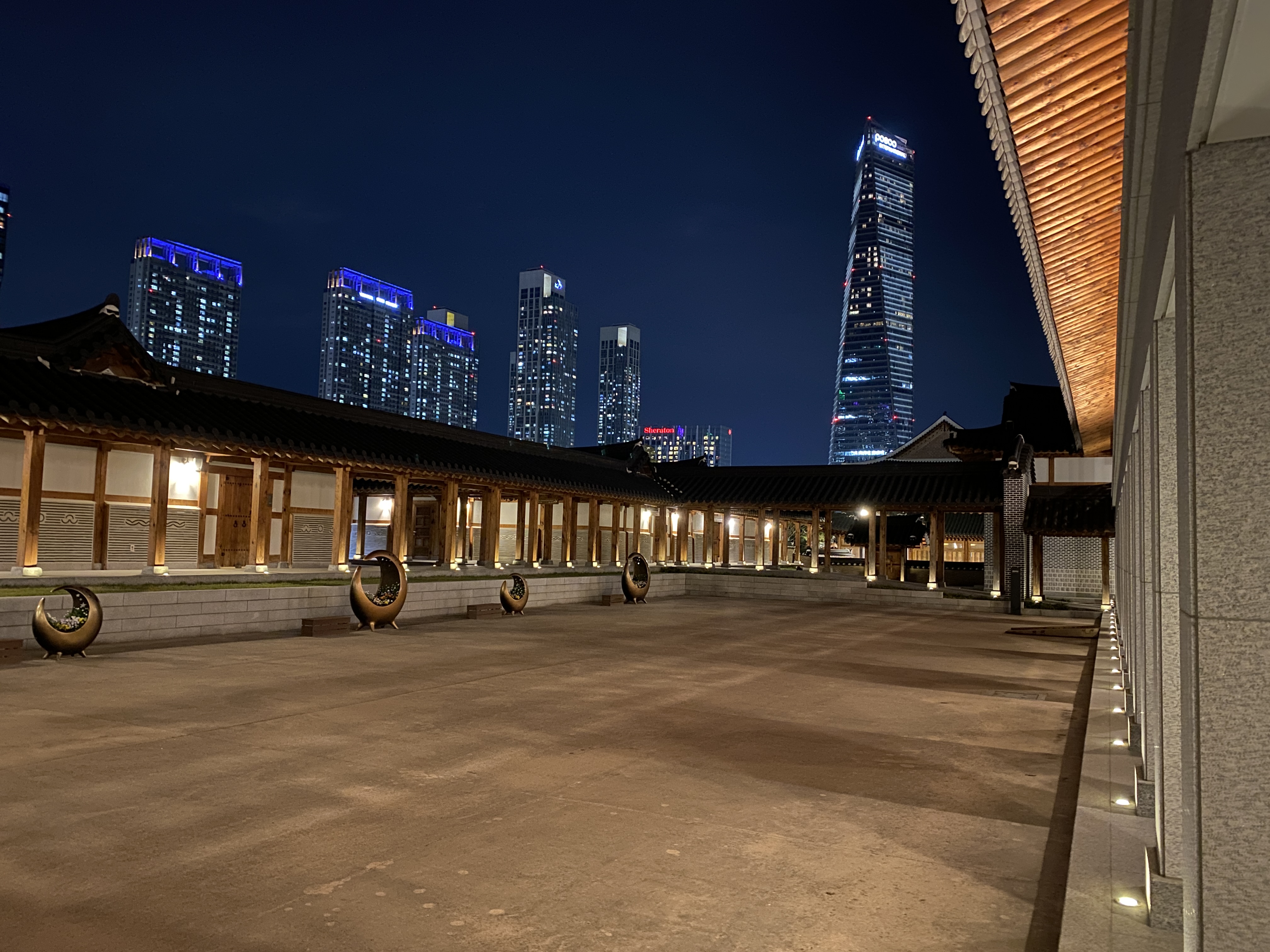 해가 금새 졌습니다. 조명이 켜지니 또 느낌이 다르네요.