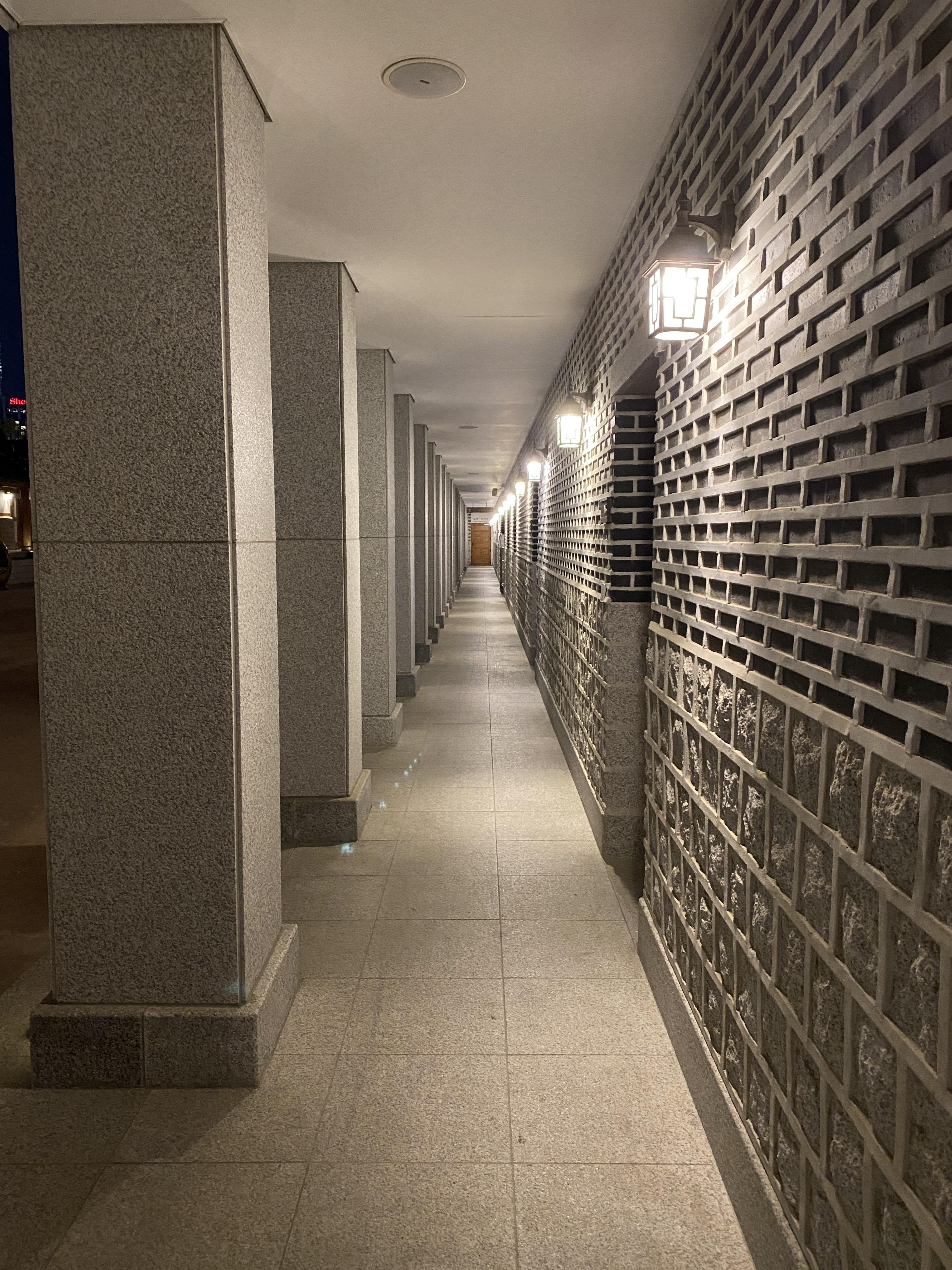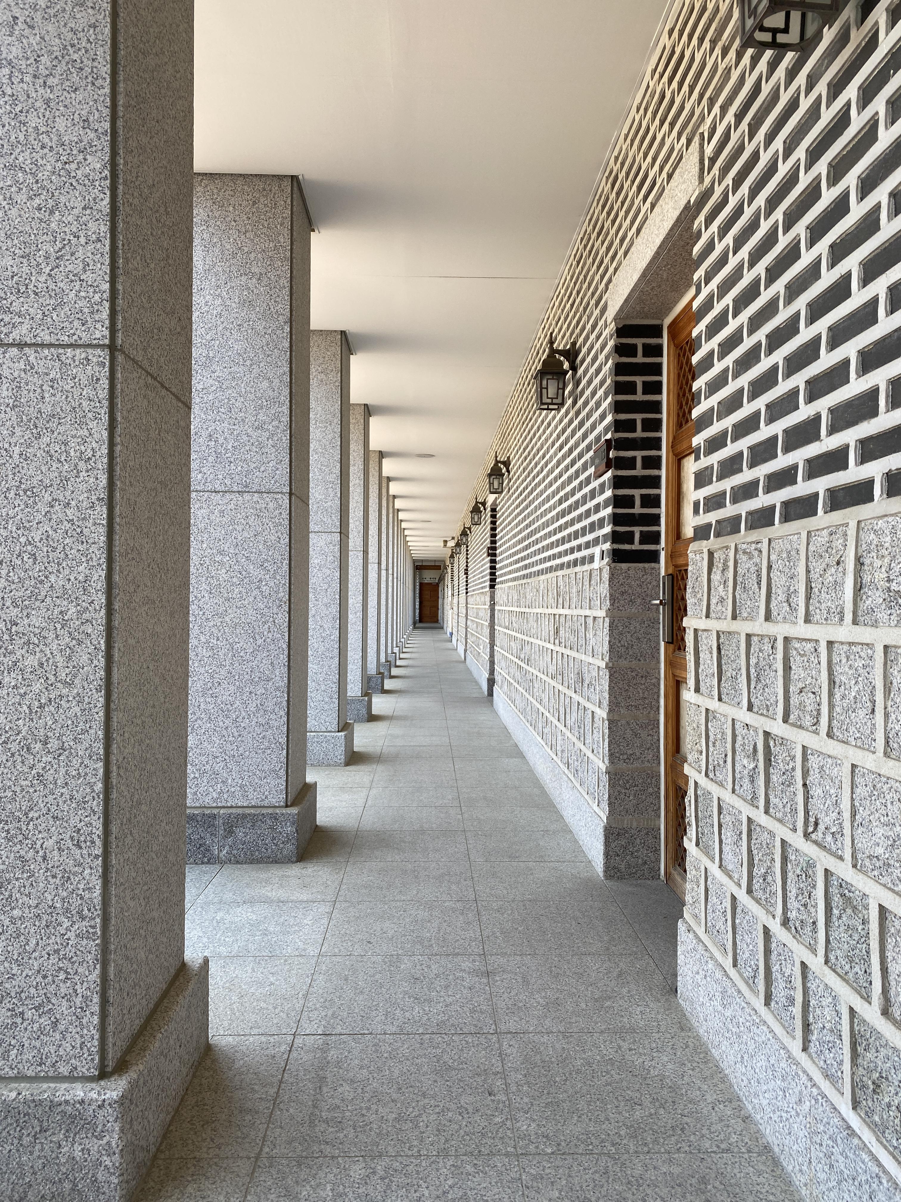 로비에서 체크인 하고 객실동으로 들어가면 개방된 외부 복도가 이어져있습니다. 단층짜리 한옥이다보니 일반적인 호텔과는 느낌이 다르네요. 전통 한옥은 아니고 현대적 건축양식을 가미한 구조입니다.