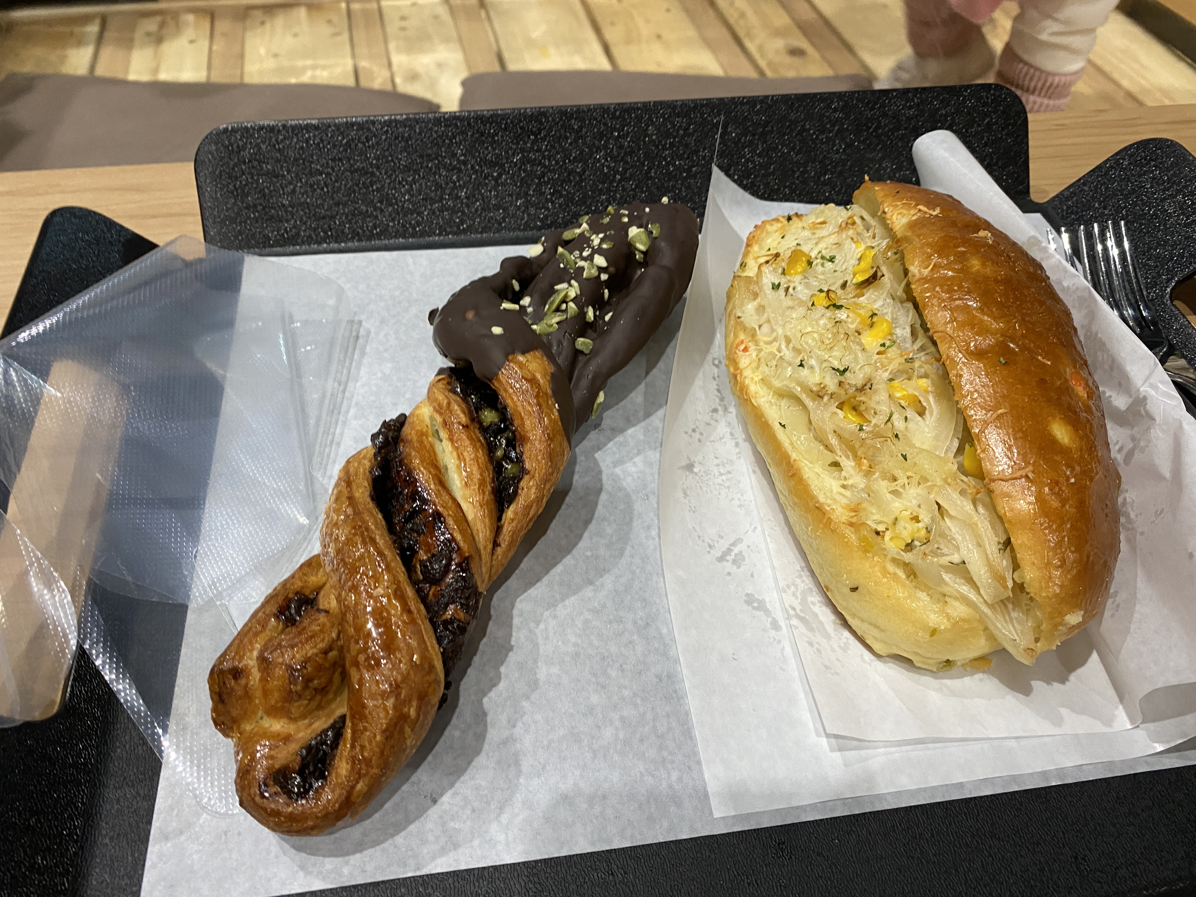 양파빵과 초코 페이스트리 꽈배기.
