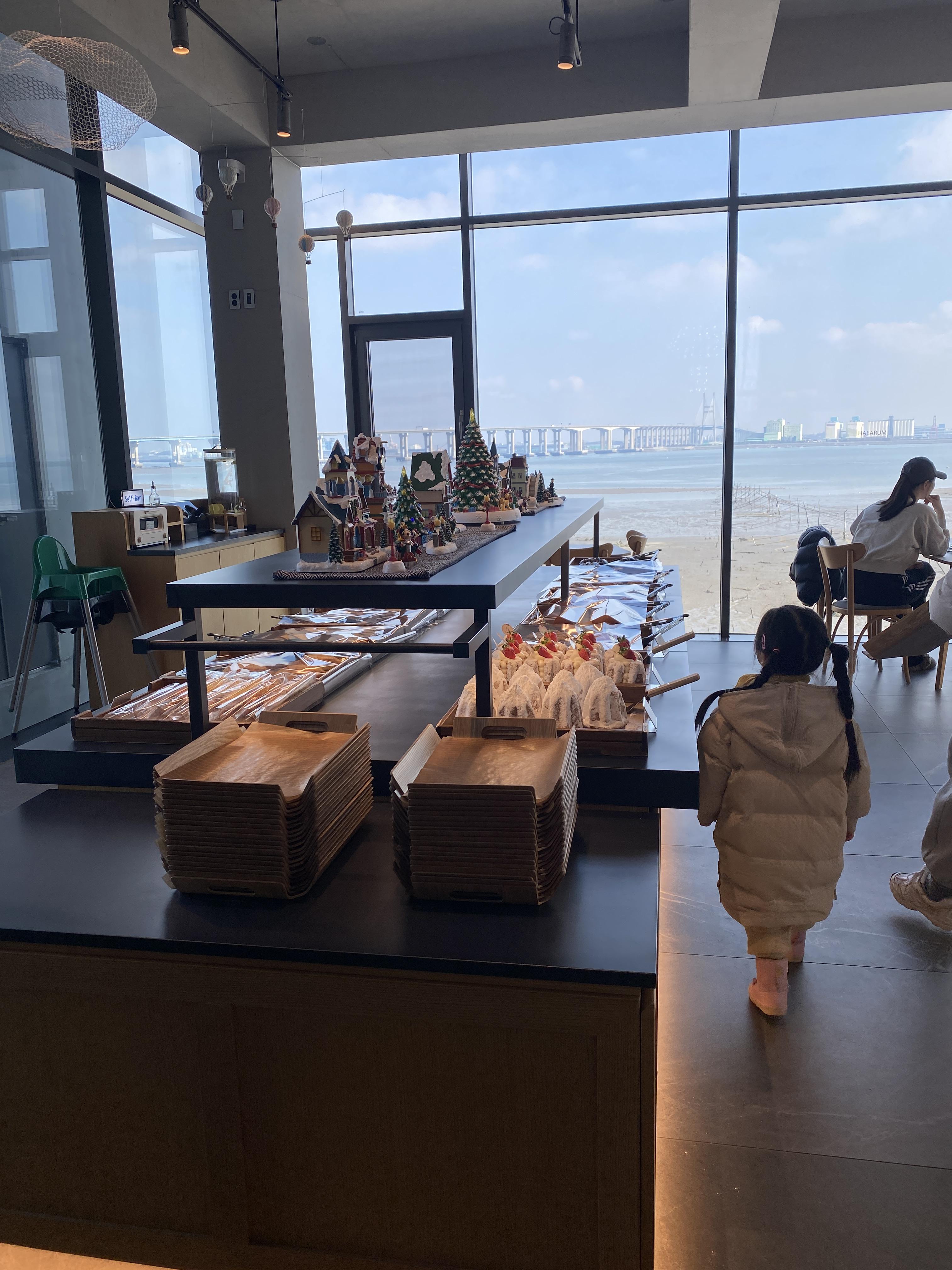 시원하게 뚫린 통창 너머로 서해대교가 보입니다.