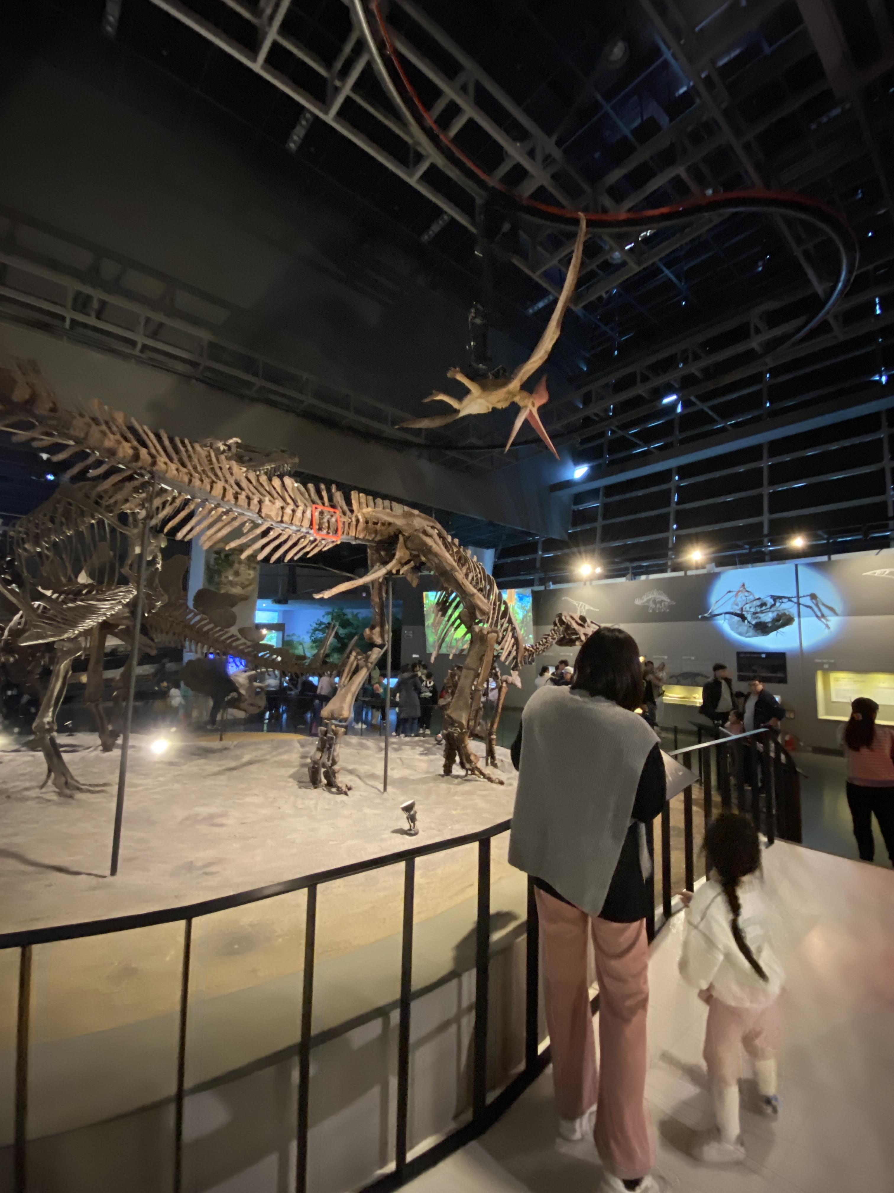 거대한 공룡 뻐들이 전시되어있는데