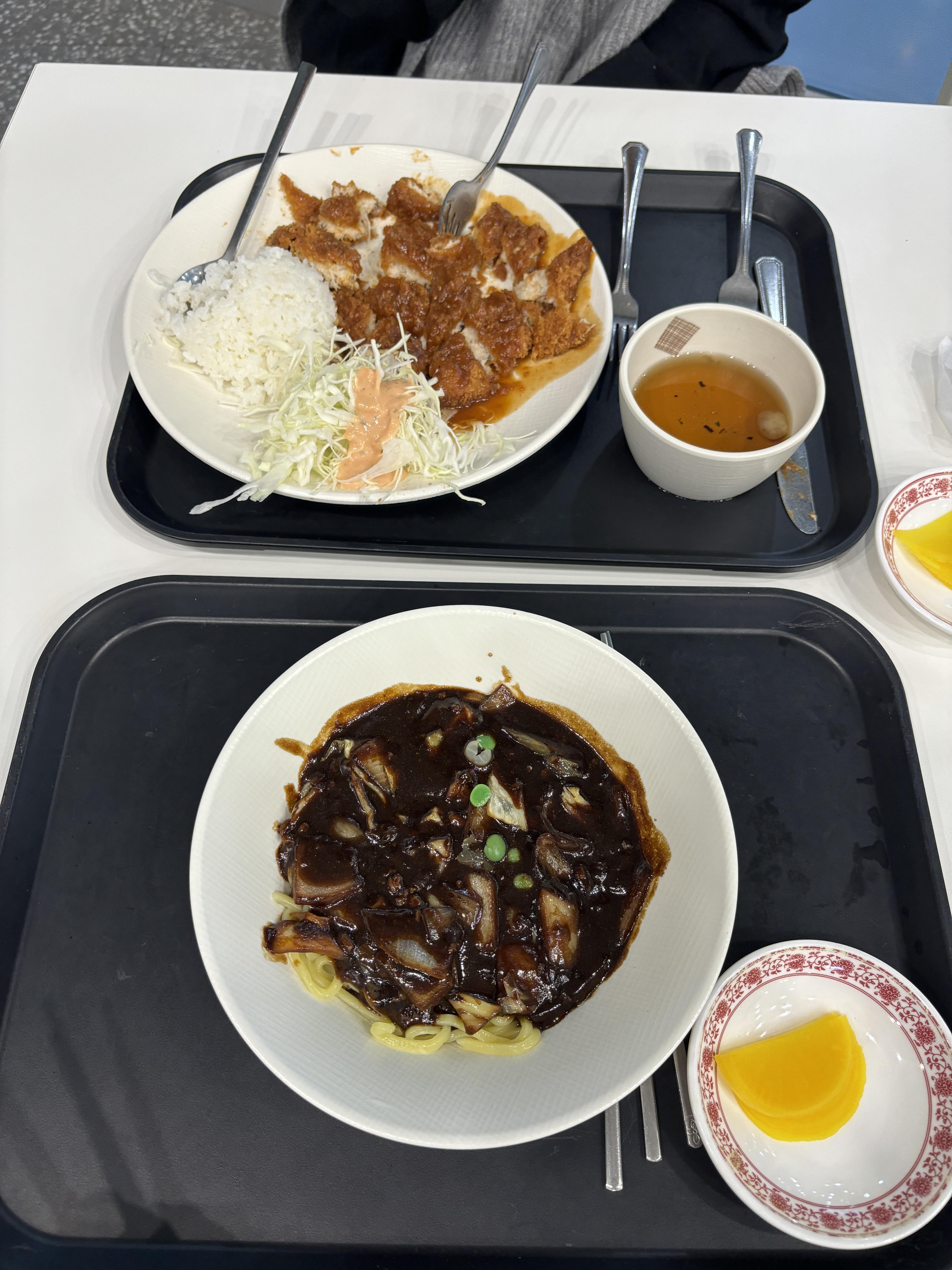 돈까스랑 짜장면 시켰는데